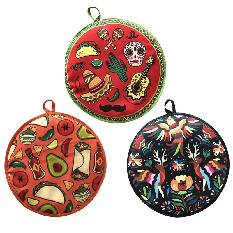 Сумка-тортилья из ткани, 12 дюймов, портативная, для микроволновки, ресторана, блинов, термостойкая, с принтом