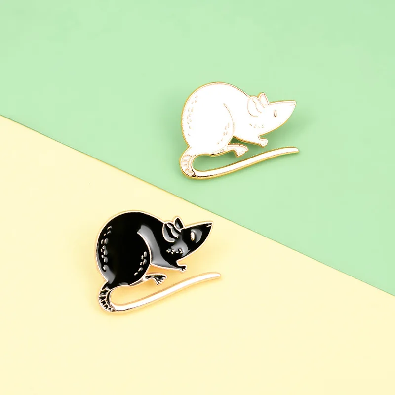 Милый черный, белый цвет крыс эмаль на булавке на заказ броши с изображением мыши значки с животными сумка рубашка лацкан традиционные женские сандалии с застежкой, ювелирное изделие в подарок для друзей