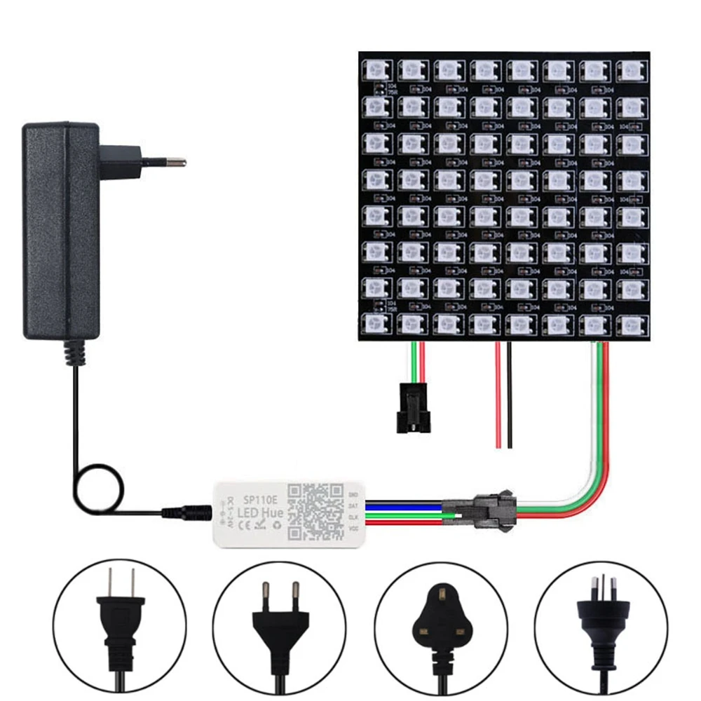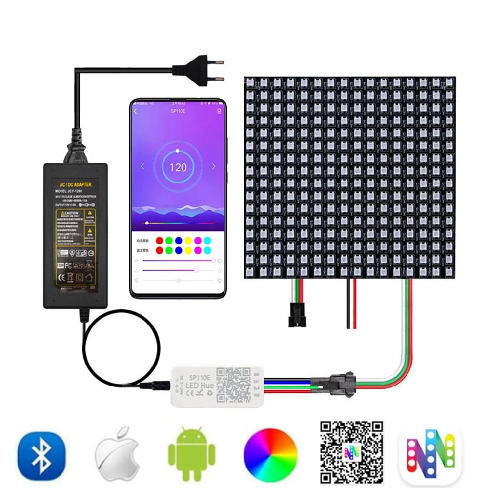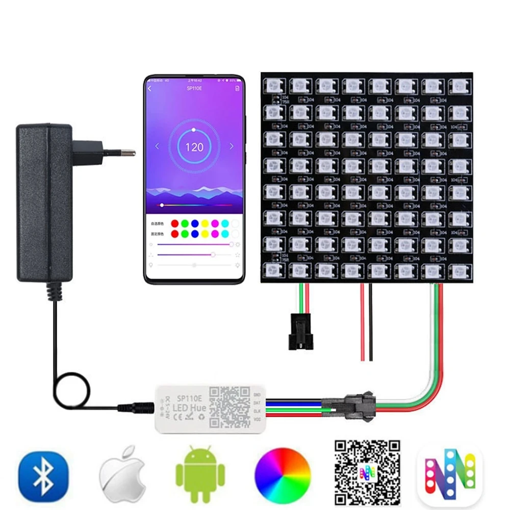 Светодиодная лента WS2812B, цифровая матричная панель WS2812, индивидуально адресный свет DC5V, светодиодный источник питания SP110E, контроллер Bluetooth