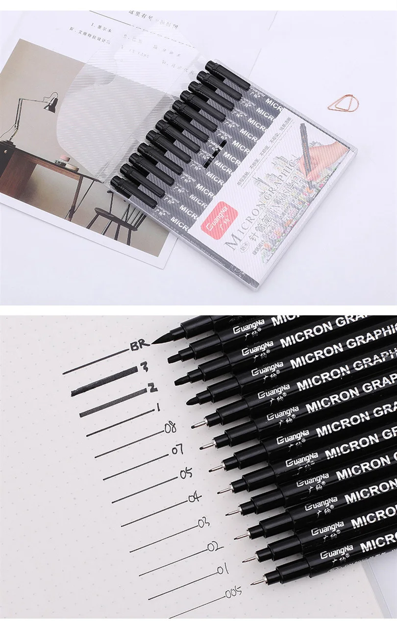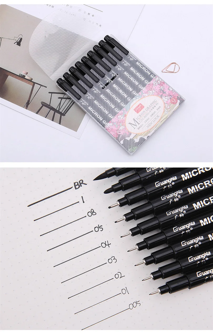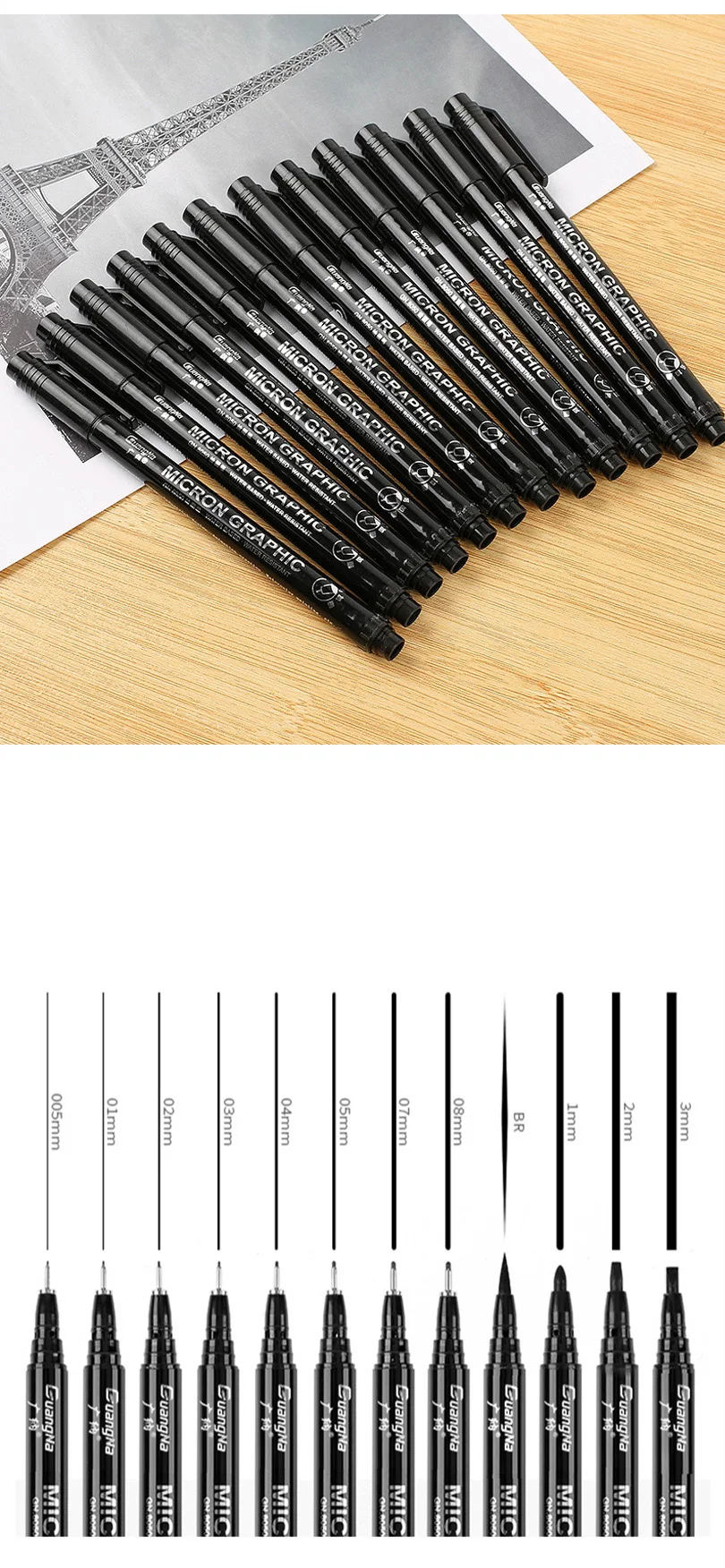12 размеров, черная ручка Pigma micron, водостойкая ручка для рисов...