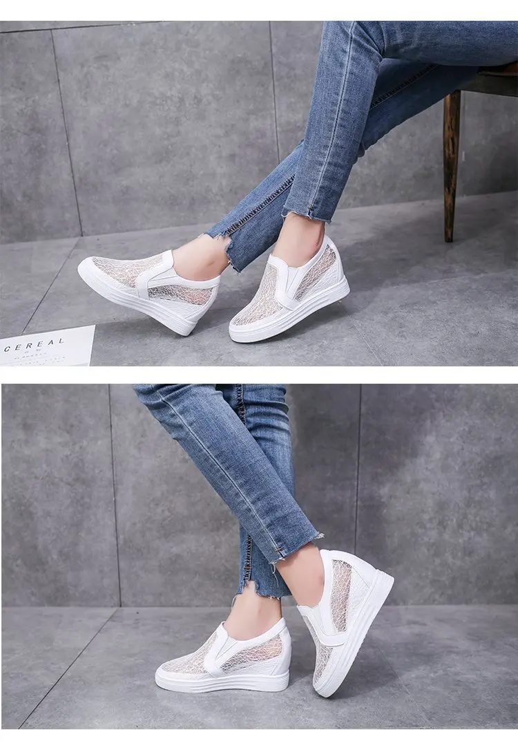 Дышащие сетчатые кроссовки на танкетке, скрытая обувь на высокой платформе, Повседневная универсальная обувь на толстой подошве, лето 2021