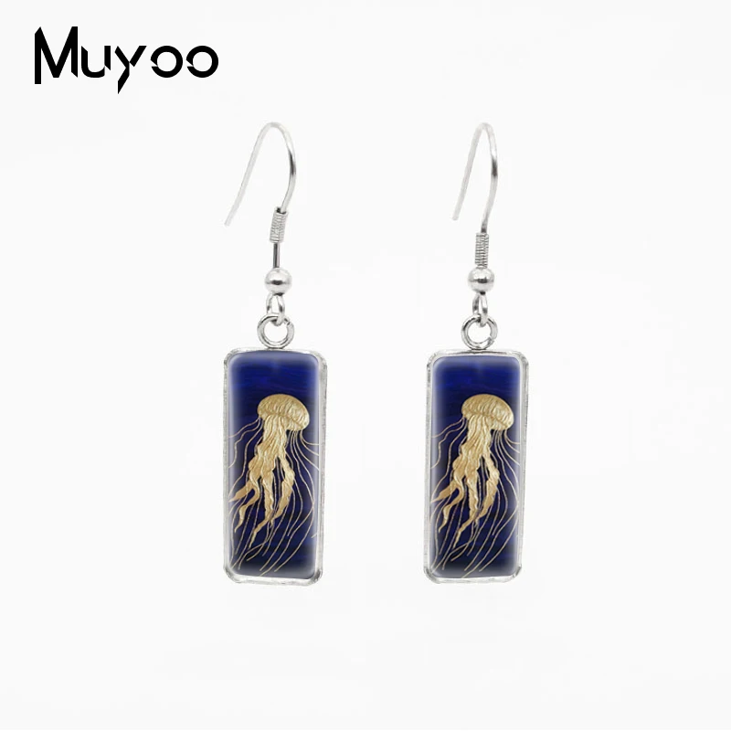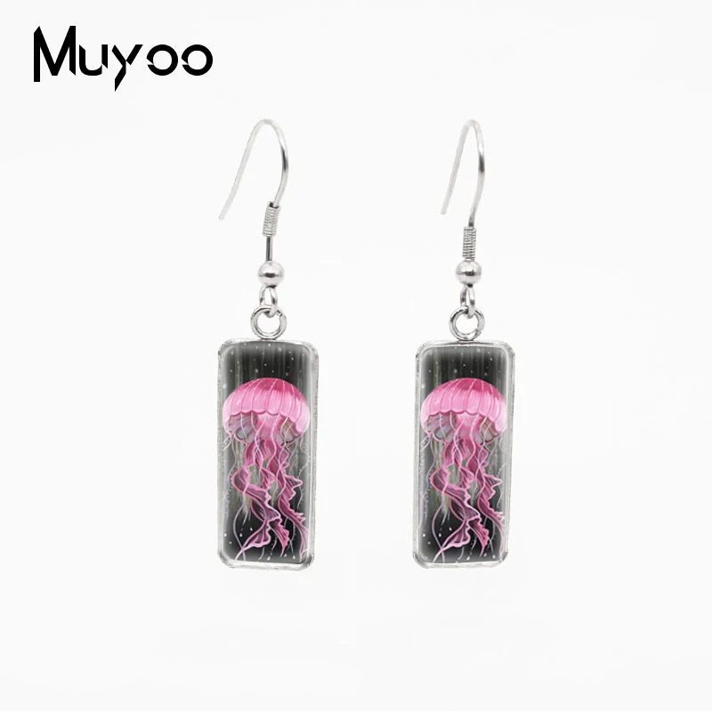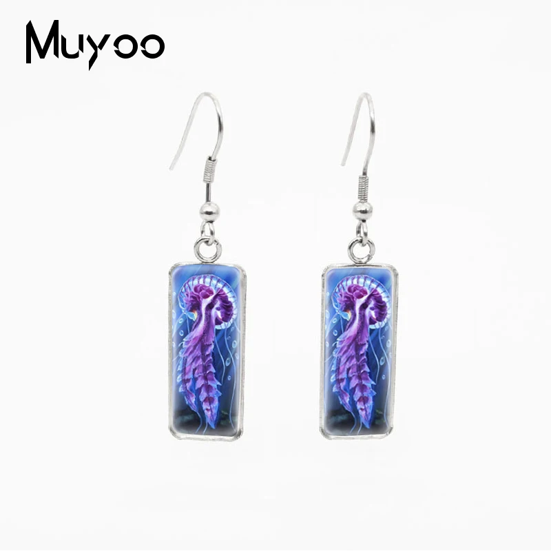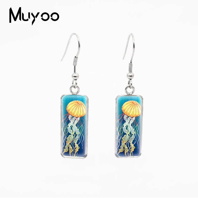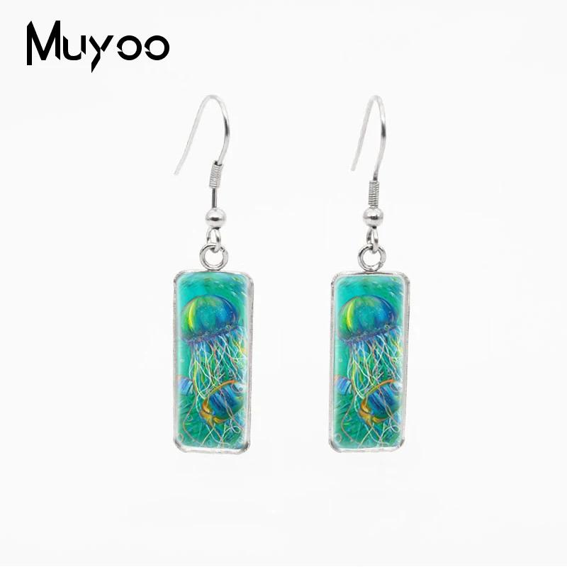 Красота Красочные Медузы в океане великолепные морские Llife Медузы прямоугольные серьги-Крючки ручной работы Ювелирные изделия Подвески
