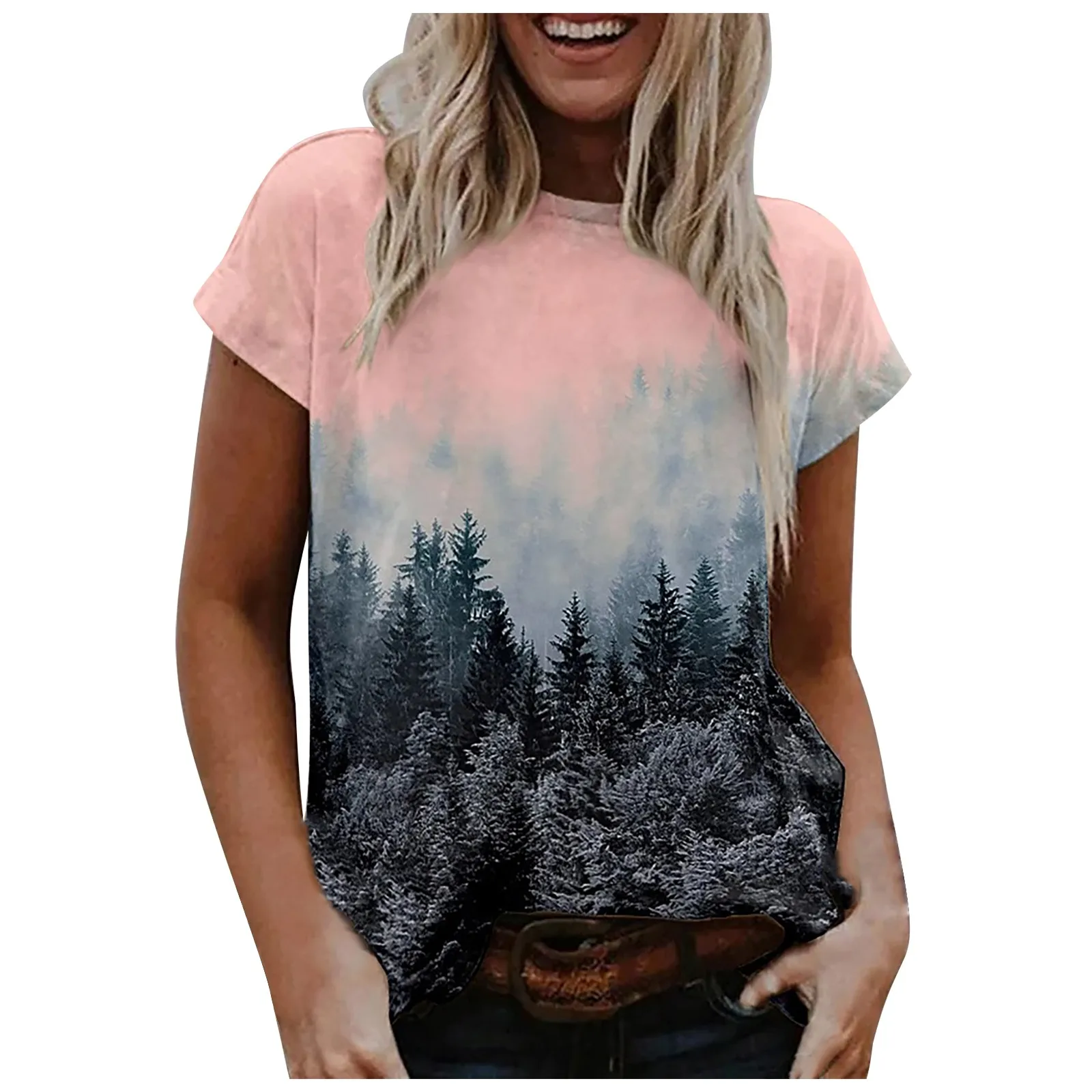 Женская модная сексуальная летняя свободная футболка с короткими рукавами и принтом в виде пейзажа