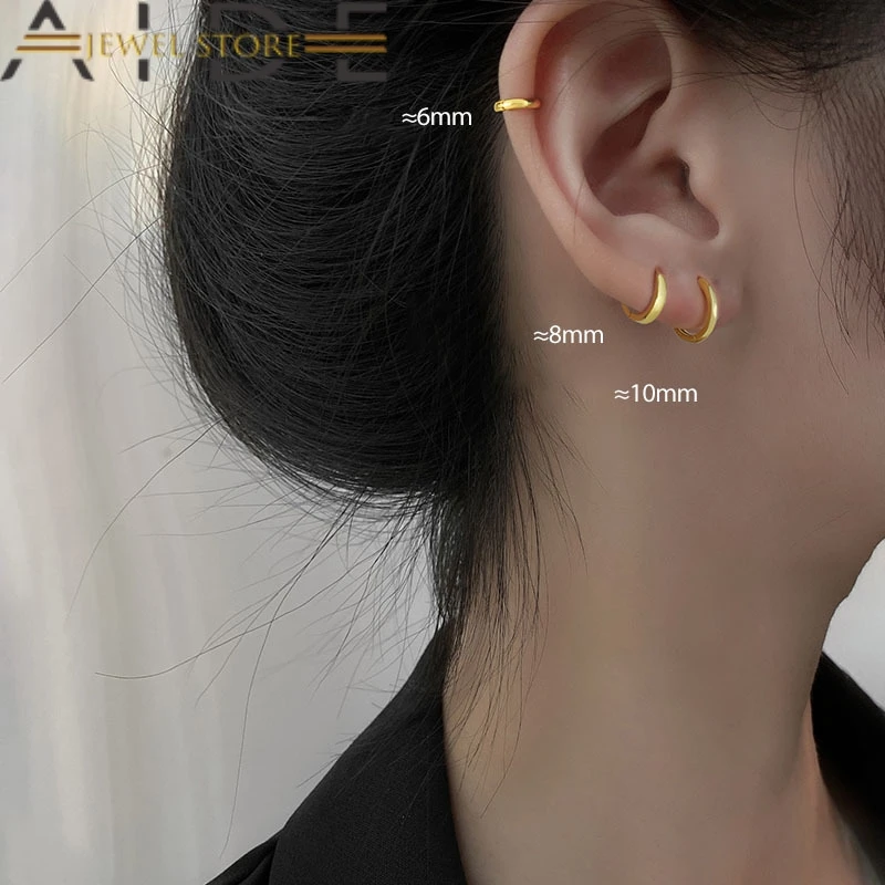 Aide 925 пробы серебро 1 пара в минималистском стиле Huggie серьги в виде колец, для Для женщин Arete серьги слуховая косточка с пряжкой 6 мм8 мм10 мм12 мм15 мм