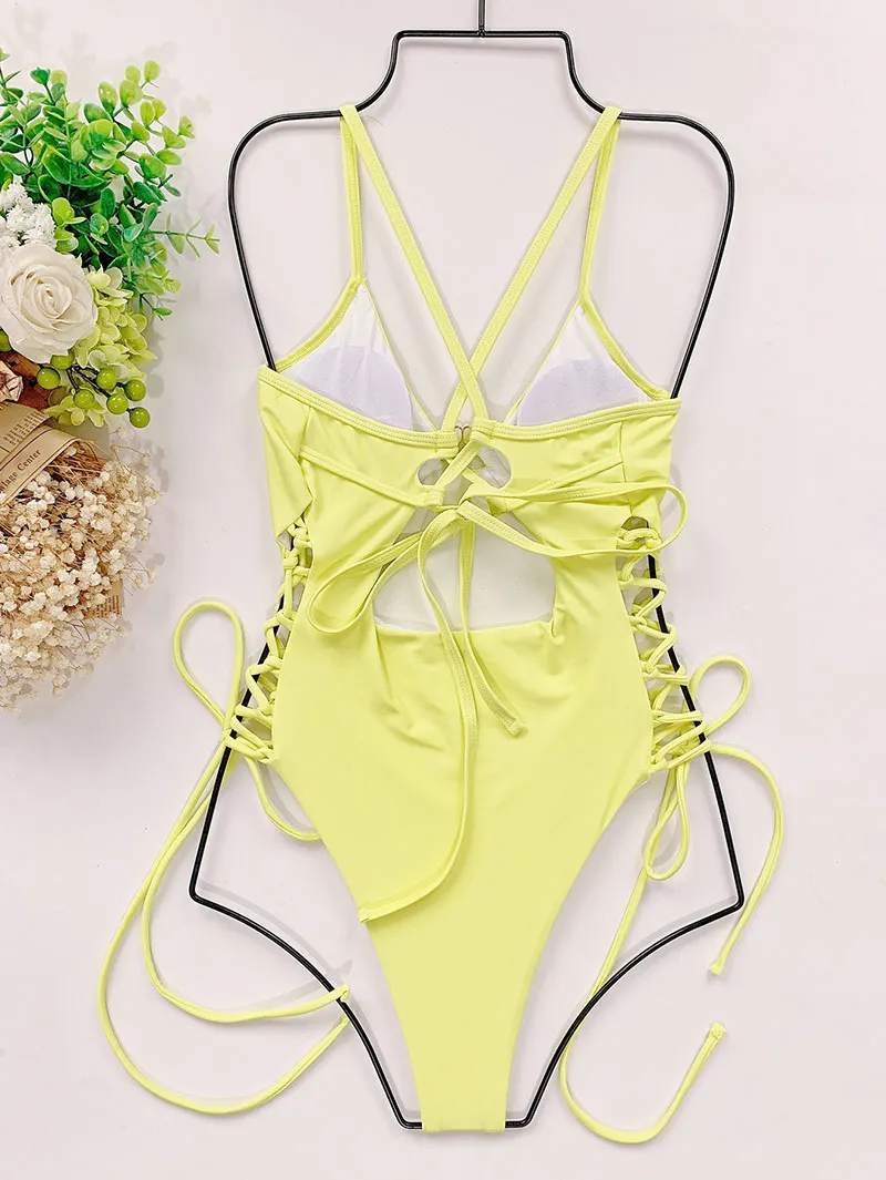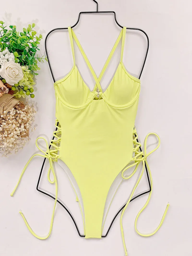 Сексуальный слитный купальник MIYOUJ с пуш-ап и перекрестными лямка...