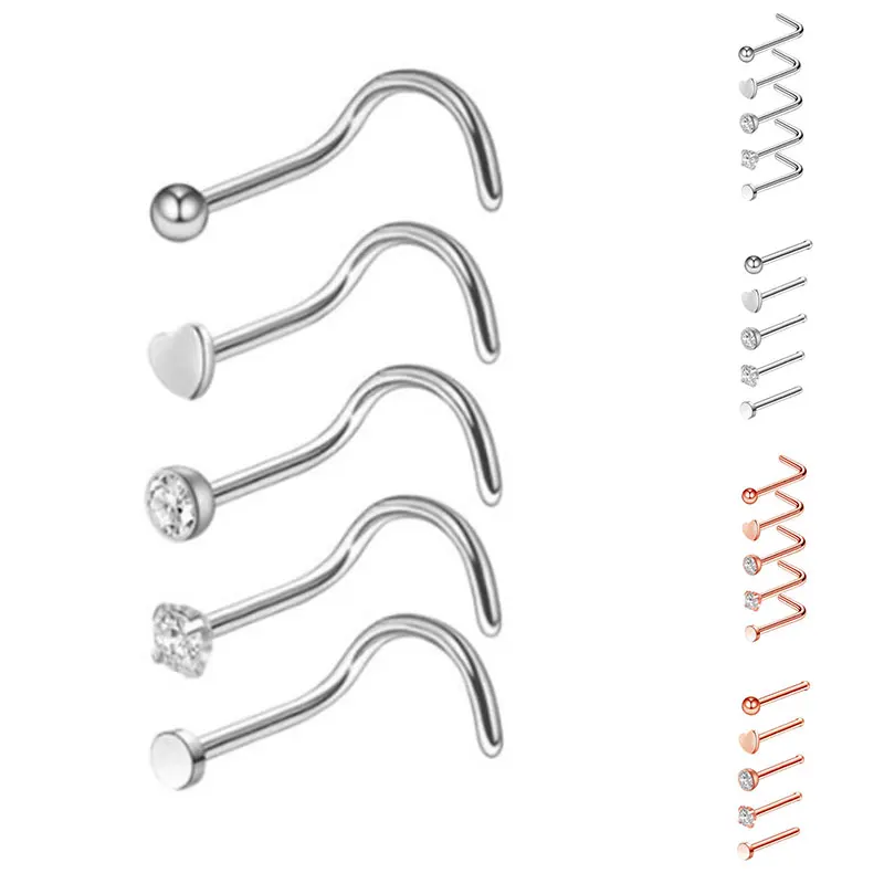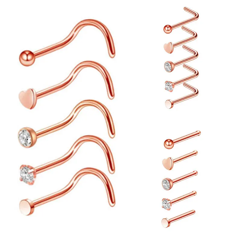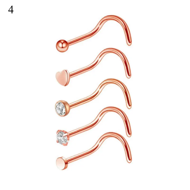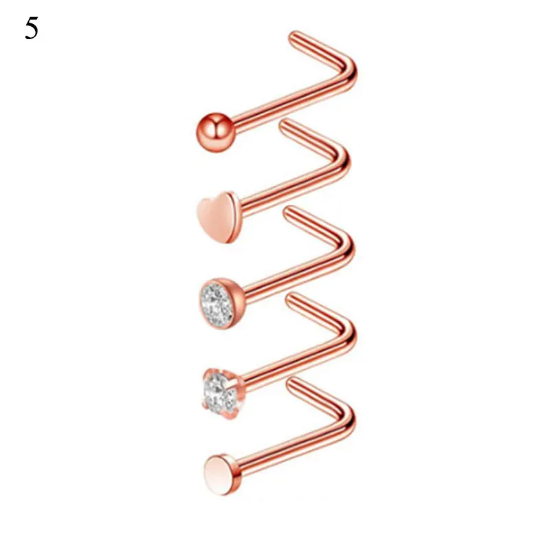 Тоннелей, бижутерия для пирсинга, 5 шт. кости серьги-гвоздики для носа серьги-гвоздики из розового золота хирургический стальной нос пирсинг U образный Нержавеющаясталь нос