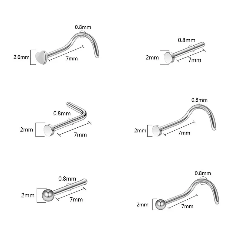 Характеристика:100% новый товар высокого качества.Описание:Тип изделия: шпильки для носаМатериал: нержавеющая стальДиаметр/педикюра задняя часть: около 0,8 мм/0,03 дюймовДлина: прибл. 7 мм/0,27 дюймаЦвет: серебристый, розовое золотоУпаковка: 1 набор носоупоров (5 шт.)Примечание:Пожалуйста, allow1-2cm погрешность измерений из-за ручного измерения.Из-за разницы между различными мониторами изображение может не отражать фактический цвет изделия. Спасибо!