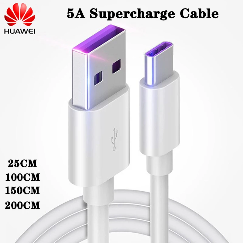 Оригинальное Супербыстрое зарядное устройство Huawei 5A, кабель USB C, быстрая зарядка 3,0, зарядный провод типа C для P20, P10, Mate 20, 10 Lite, Honor 10, V20