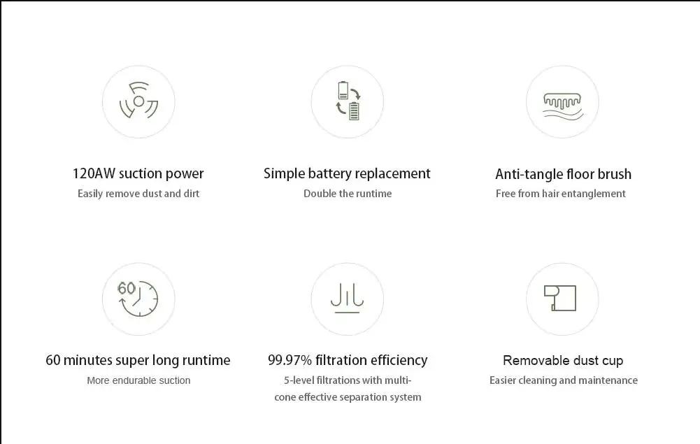 Ручной пылесос XIAOMI MIJIA 1C, 20000 па, циклонная всасывающая щетка