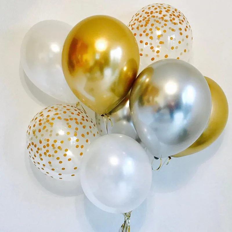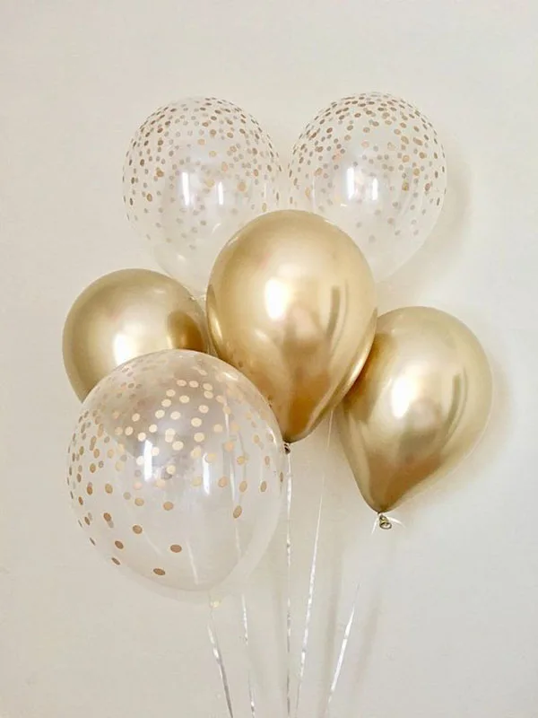 Набор латексных воздушных шаров в горошек, золотистые и хромированн...