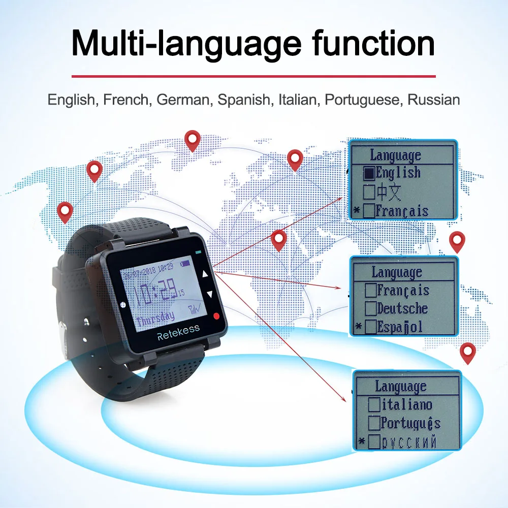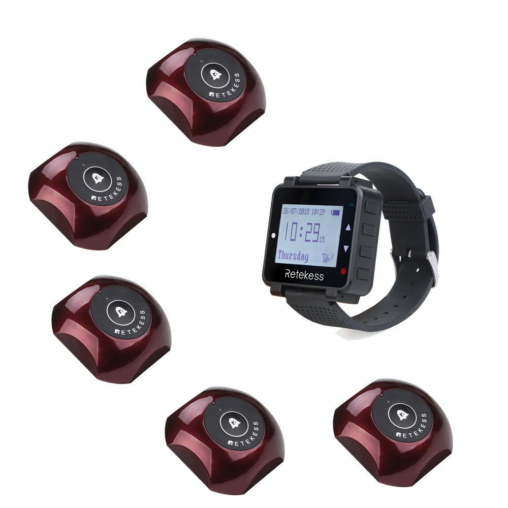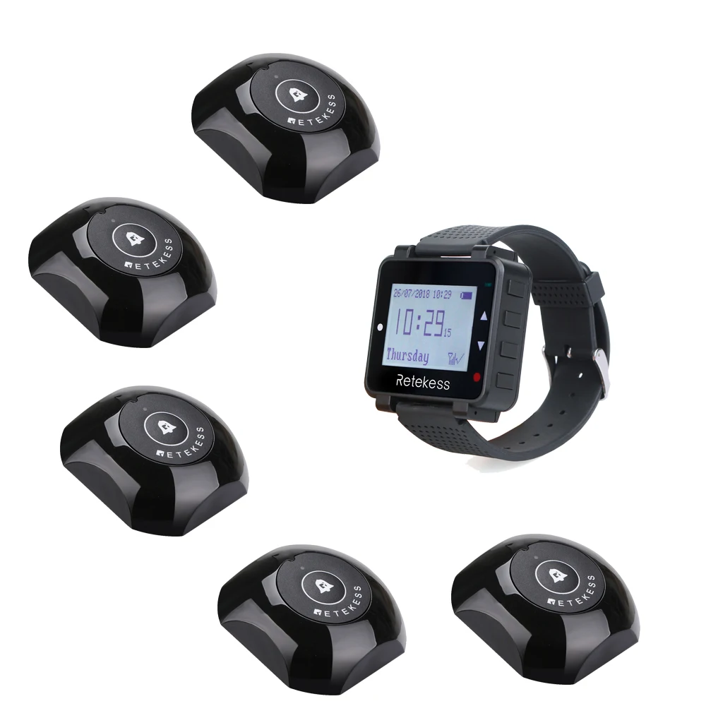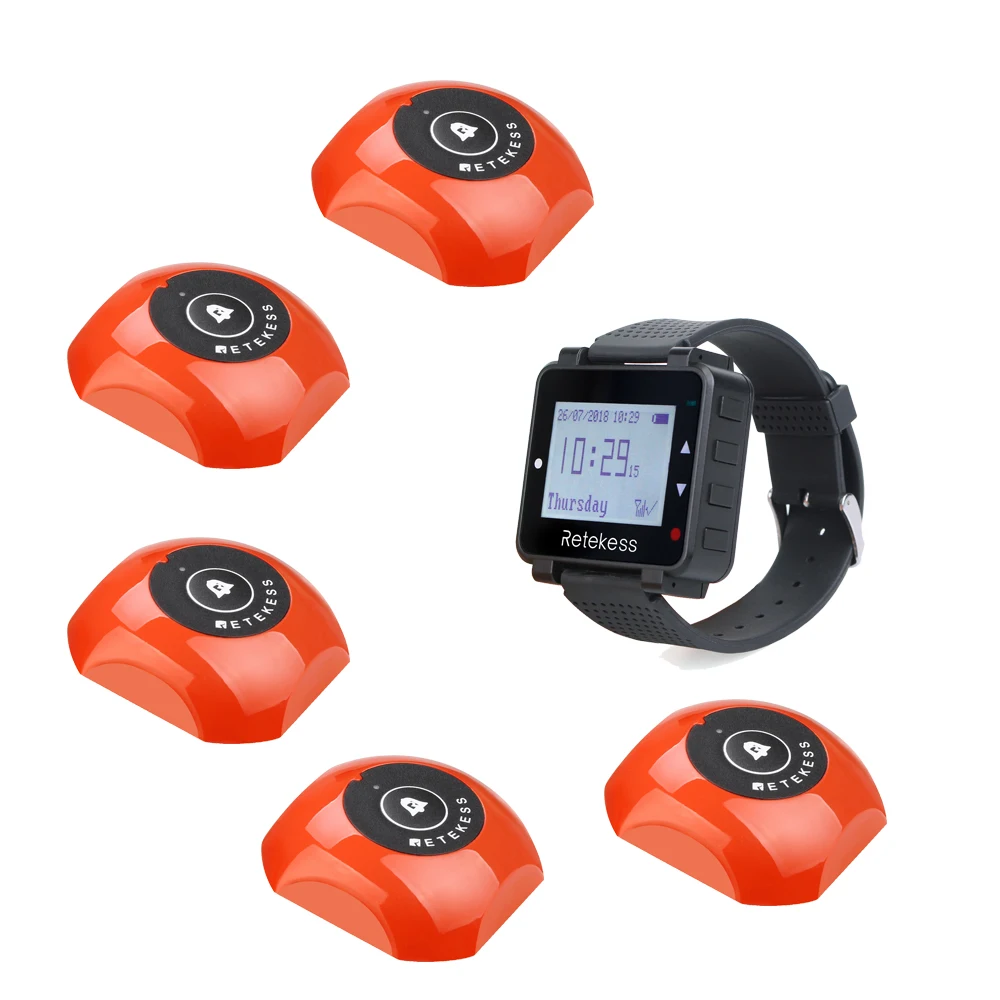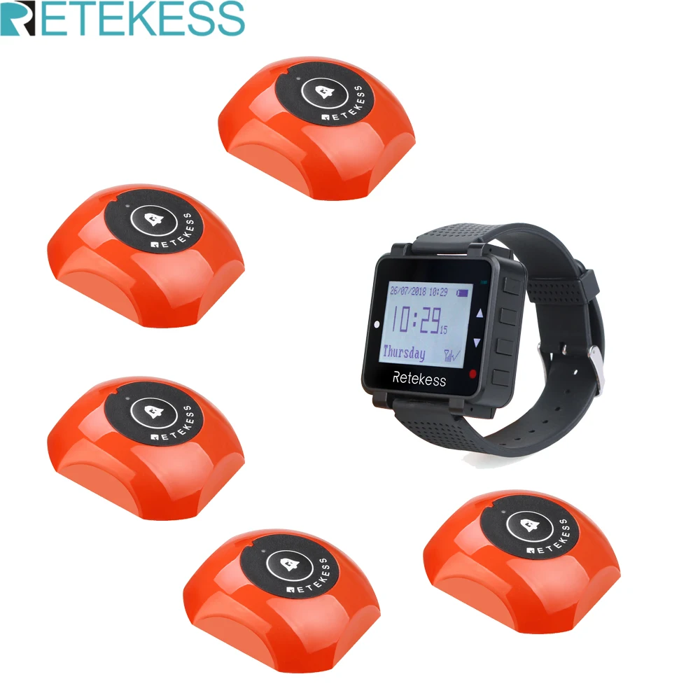 Retekess ресторанный пейджер система вызова официанта T128 часы приемник + 5 шт. TD013 кнопки вызова беспроводной Вызов офис пейджер для бара