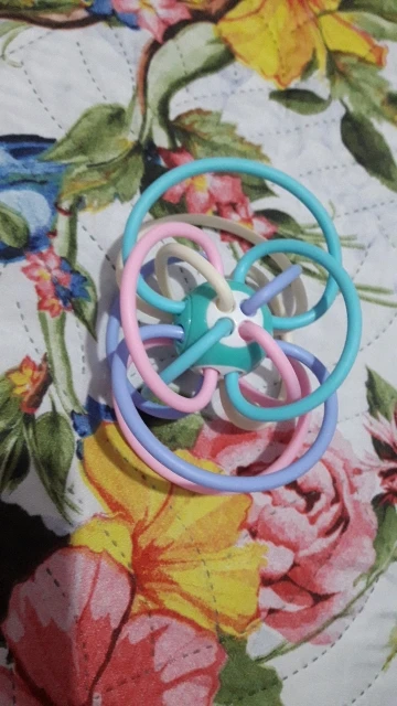 Игрушка неплохая, но моего пятимесячного малыша не очень заинтересовала. Там ничего не гремит, может из-за этого. Грызть предпочитает другие игрушки. По качеству претензий нет, только немного помята.