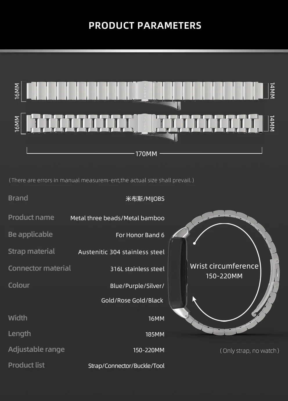 Ремешок металлический для Huawei Honor Band 6, сменный Браслет для наручных часов Huawei 6 Pro