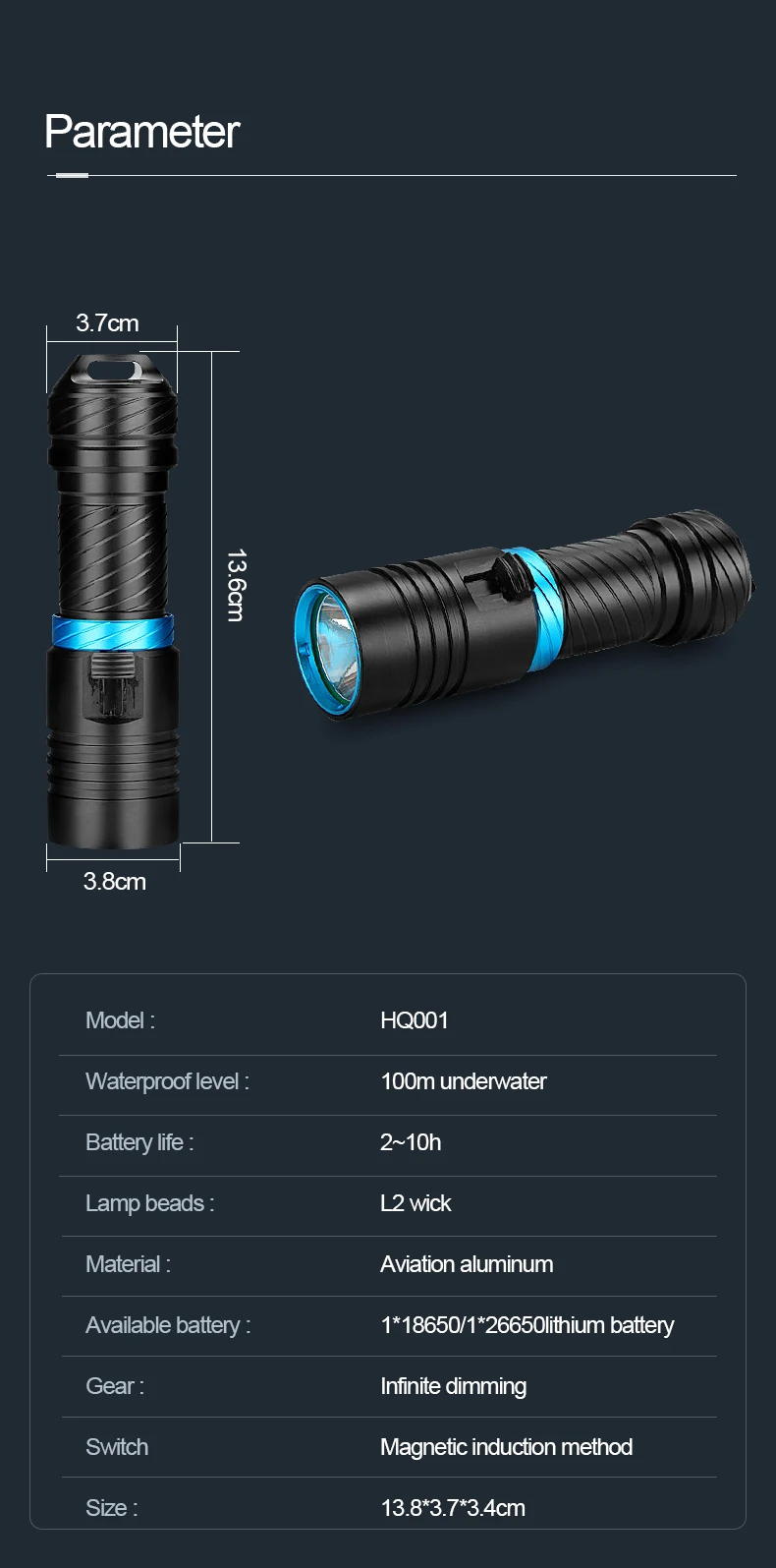 Характеристика:1. Основной корпус этого фонарика для дайвинга изготовлен из высококачественного алюминиевого сплава, который очень прочный.2. Внутренняя проводка использует высокоэффективную схему повышения для максимального использования батареи3. Отличная водонепроницаемость, подходит для использования на открытом воздухе, дайвинга, подводных операций и других тяжелых погодных условий4. Мощный, яркий и ослепительный.5. Противоскользящий дизайн и водонепроницаемый дизайн.6. Рабочее напряжение широкое, и батарея может быть использована в максимальной степени.7. Дайвинг, Подводная Работа, подводный заполняющий светильник, кемпинг, охота, рыбалка, домашнее обслуживание, домашние и уличные мероприятия