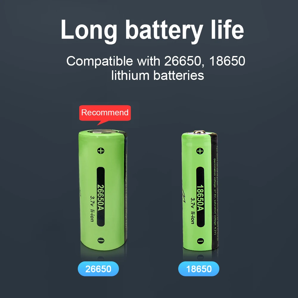 •Время освещения: аккумулятор 18650 3-4 часа; Аккумулятор 26650: 6-8 часов.