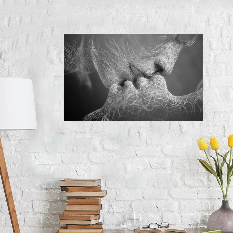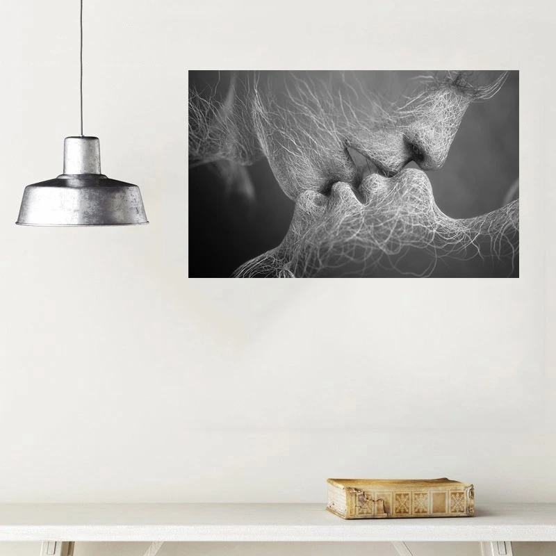 Новинка, модная черно-белая Абстрактная Картина на холсте с поцелуем любви, Настенная картина, печать, домашний декор (без рамки)