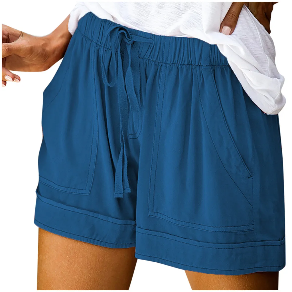 Женские Шорты со шнуровкой, повседневные свободные короткие брюки с эластичным поясом и карманами, 2021