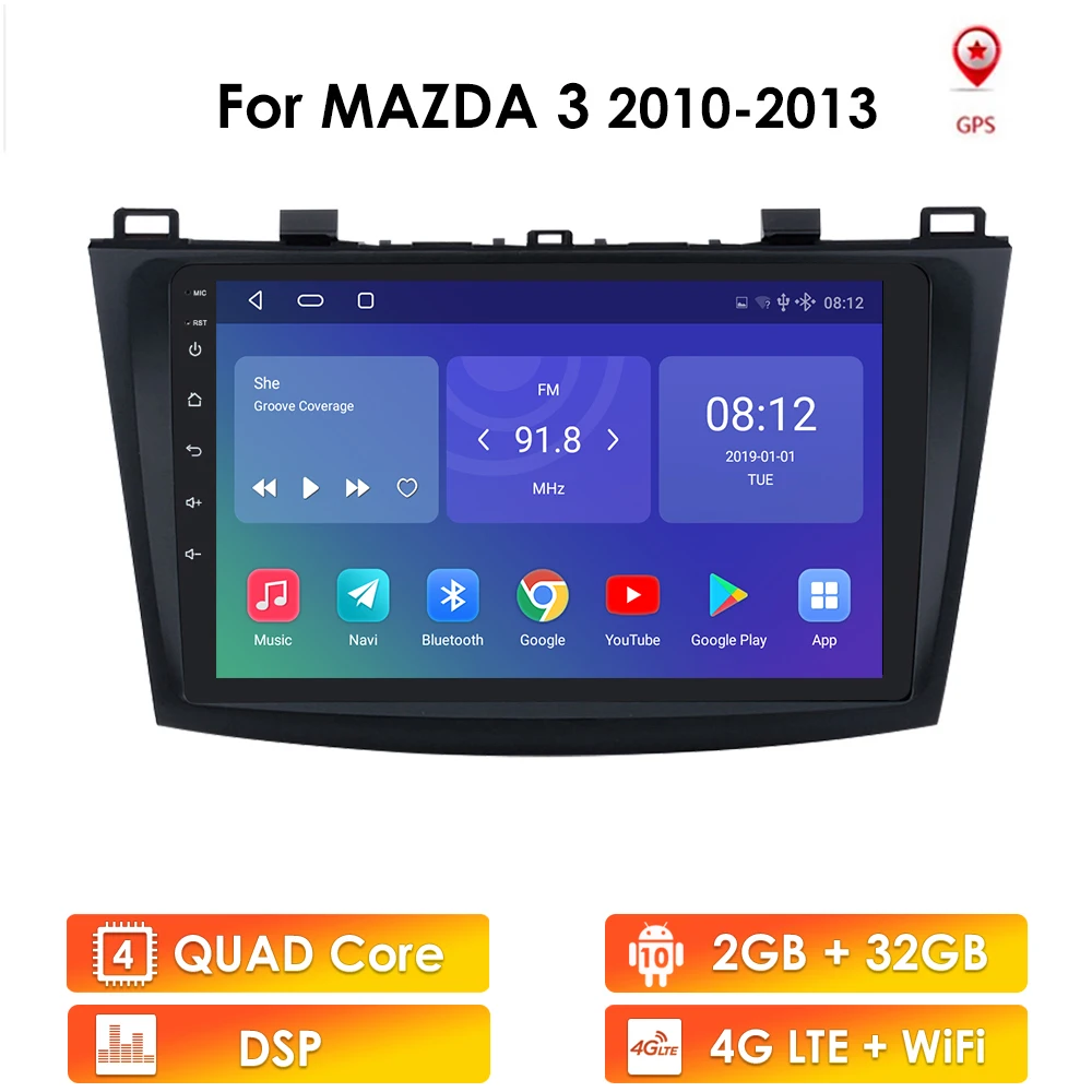 2 Din Android 10 Автомобильный мультимедийный радио плеер для Mazda 3 Mazda3 2010-2013 Автомобильный GPS навигатор Автомагнитола GPS WIFI USB микрофон