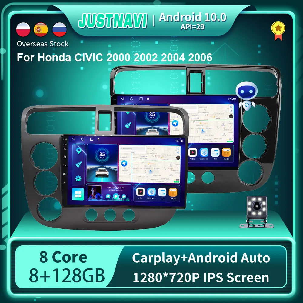 Автомагнитола на Android 10,0, автомобильный мультимедийный плеер 8G 128G GPS для Honda CIVIC 2000 - 2006 DSP Carplay Auto 1280*720P 4G WIFI No 2din DVD