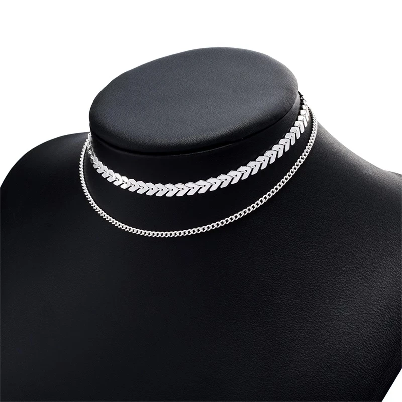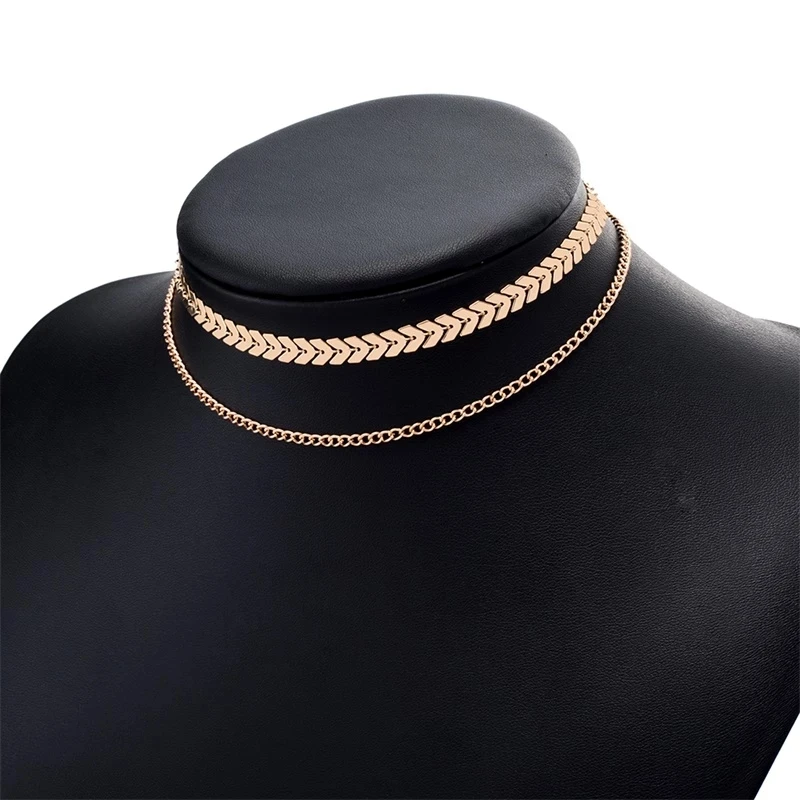 Женское Двухслойное ожерелье-чокер, ожерелье золотистого цвета в форме рыбьего самолета, плоская цепочка, бижутерия, 2021