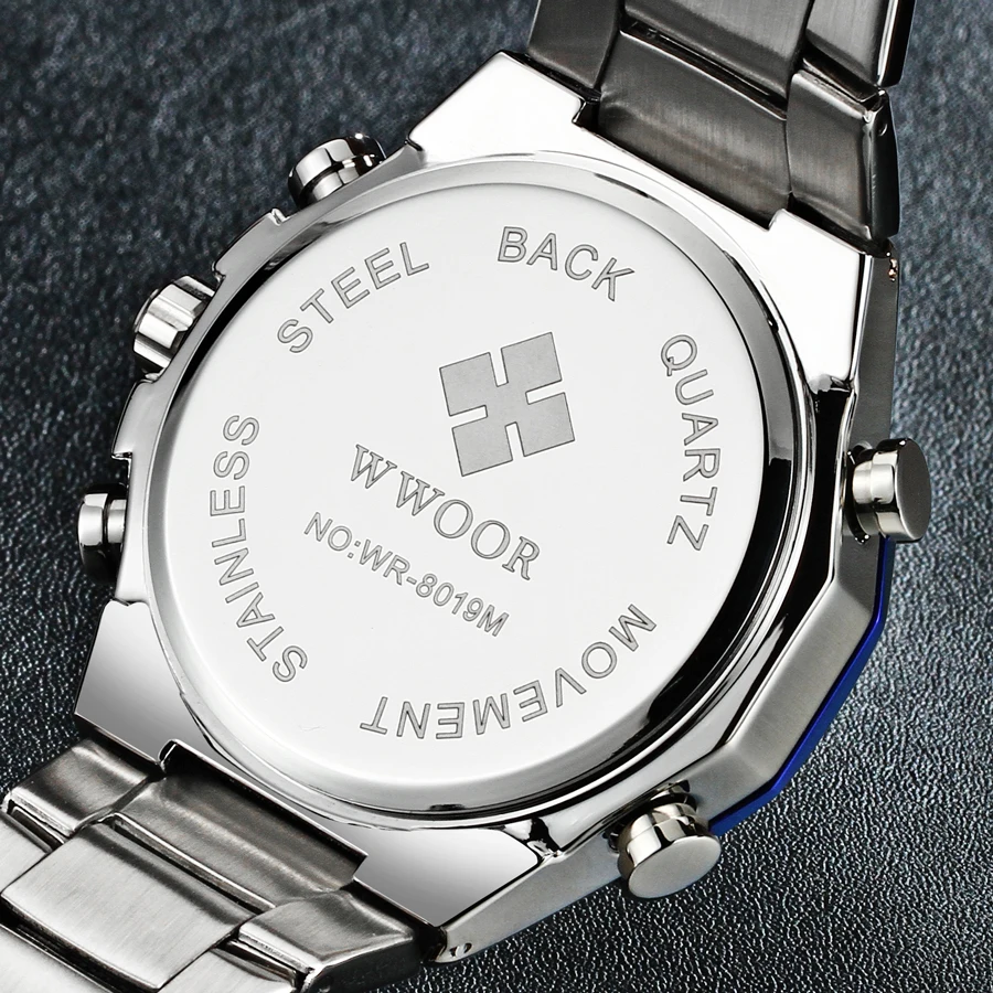 Мужские цифровые светодиодные золотые часы WWOOR, роскошные золотистые водонепроницаемые наручные часы из нержавеющей стали для мужчин 2019