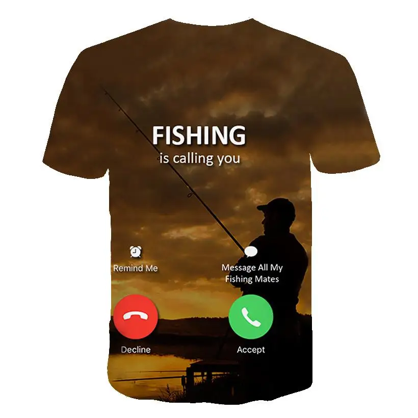Мужская футболка с рисунком рыбалки, Повседневная футболка с рисунк...