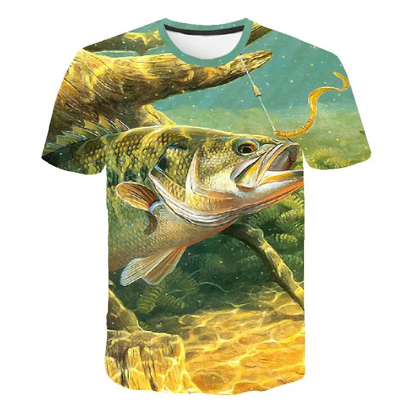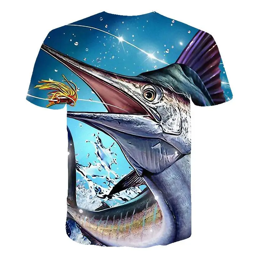Летняя футболка с 3D-принтом рыбы, футболка с круглым вырезом для м...