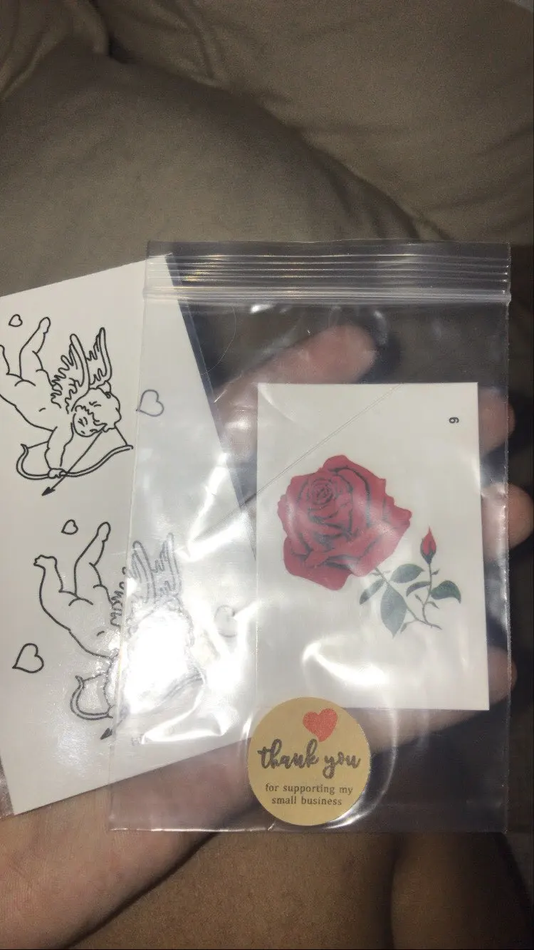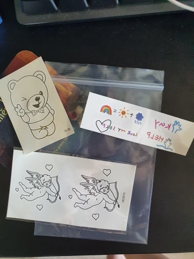 Картинки отличного качества , долго держатся на коже и выглядят очень красиво ! Беру не в первый раз и буду брать ещё :3 продавец очень бережно относится к заказам и добавляет маленькие подарочки )