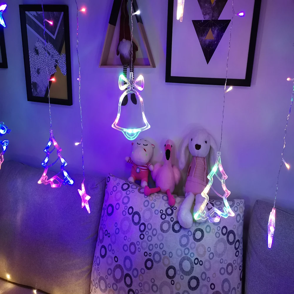 СВЕТОДИОДНАЯ Гирлянда-занавес 3,5 М звездный колокол олень 220 В сказосветильник освещение s праздничное украшение гирлянда для свадьбы Рождества вечеринки декоративное освещение