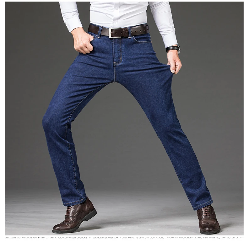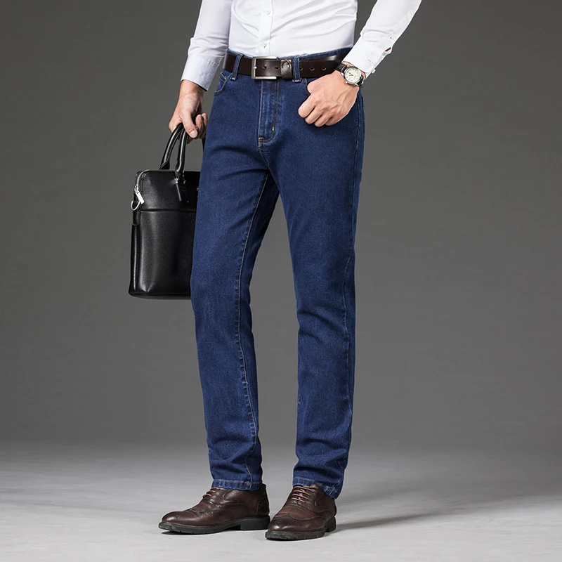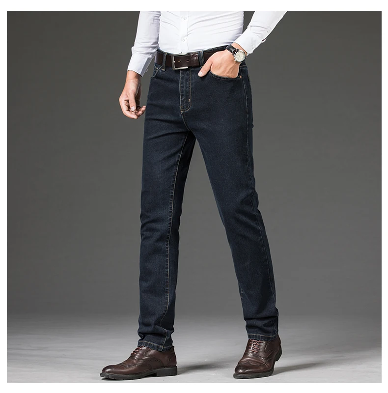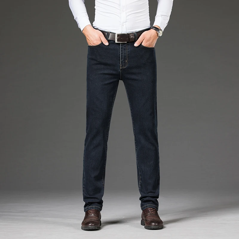 Мужские джинсы, деловые прямые длинные джинсы, повседневные эластич...