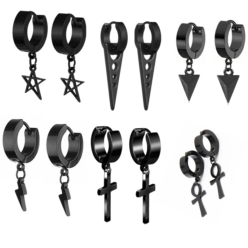 Клипсы для пирсинга для мужчин и женщин в стиле панк, черные готические украшения для ушей из нержавеющей стали, несколько стилей, Ювелирное Украшение для пирсинга, 1 пара