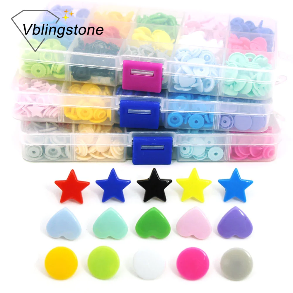 Пластиковые кнопки-застежки T3T5 KAM для одежды, аксессуары в коробке, пряжка в форме сердца с круглой звездой, 150 разноцветных комплектов