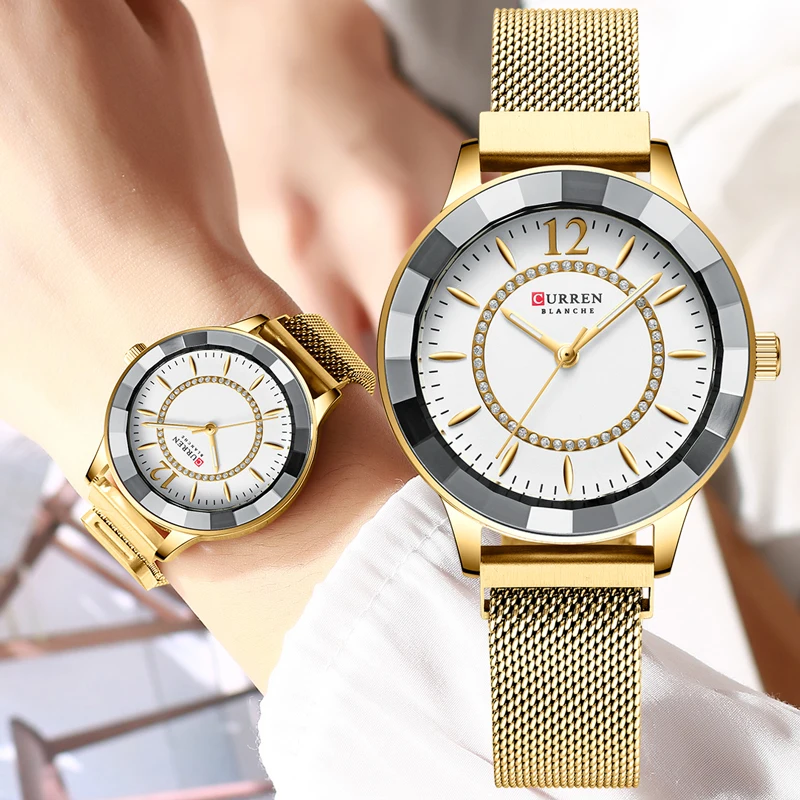 Женские часы 2021 известный бренд Curren Модные элегантные часы женские золотые наручные часы из нержавеющей стали Relogio Feminino