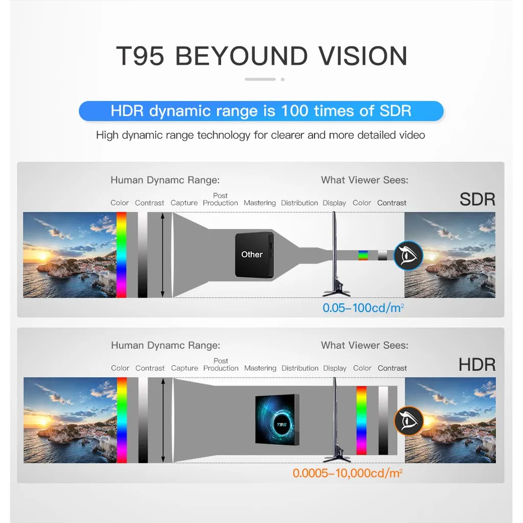 Графический процессор: Mali-G31 MP2Процессор: H616 Quad corecortex-A53 частота: 1,5 ГГцAndroid 10,0ОЗУ и ПЗУ: 2 Гб + 16 Гб; 4 Гб + 32 ГБ, 4 Гб + 64 Гб;Поддержка 6K UHD, H.265, 3D Blu-Ray;Поддержка HD 2,0, USB2.0;Ethernet : 100 мБеспроводная: ДаВидеовыход: HDMI 2,0GOOGLE Cast: ДаМощность: 5 В постоянного тока, 2 АНомер модели: T95Обновление системы: ДаIPTV: ДаОбновление OTA: ДаПульт дистанционного управления: в комплекте