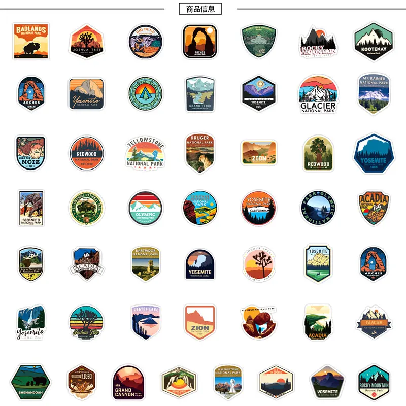 10 Вт, 30 Вт, 50 шт.упак. различных национальных парка этикетка наклейки для автомобилей мотоциклы стакана воды мебель для детских игрушек чемодан скейтборд