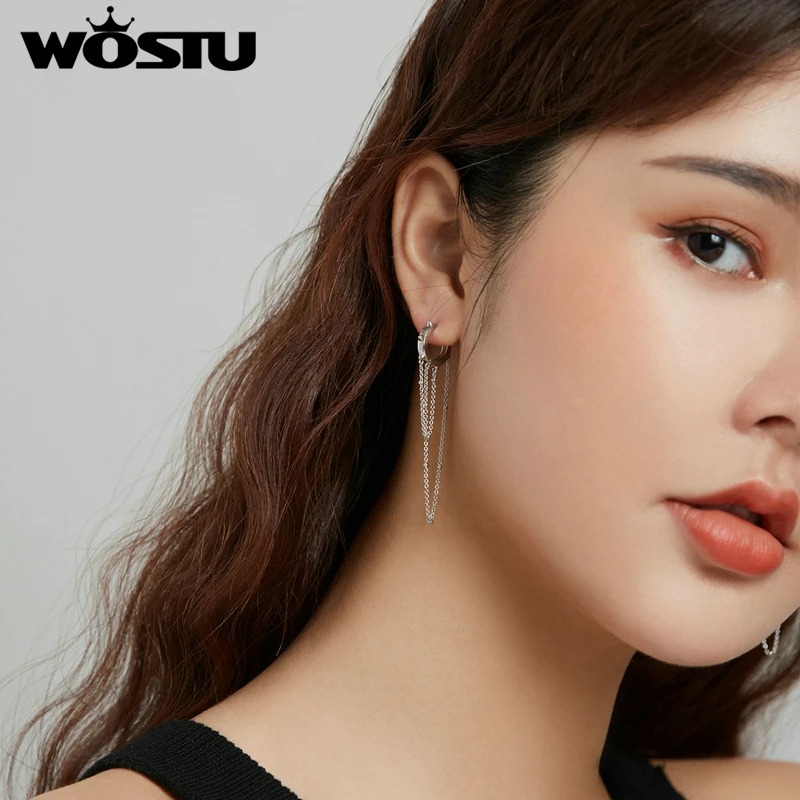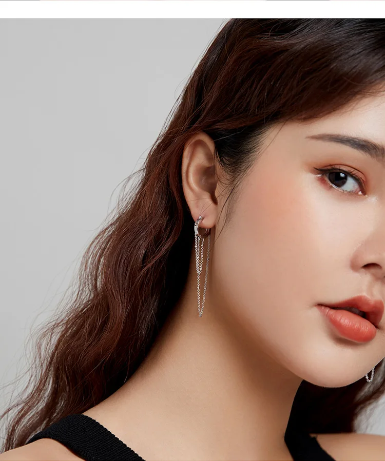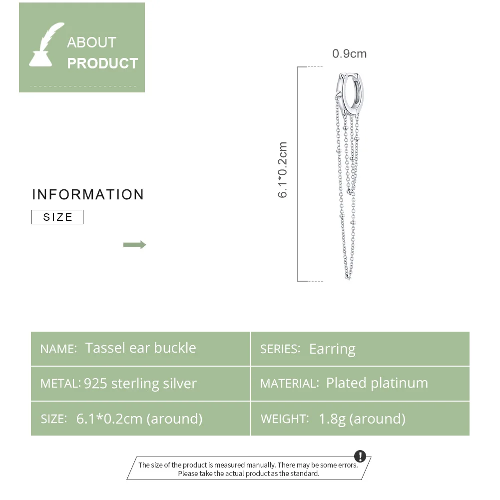 Женские серьги-кольца из настоящего серебра 925 пробы, с кисточкой и застежкой, 1 шт., свадебное Ювелирное Украшение CQE1115