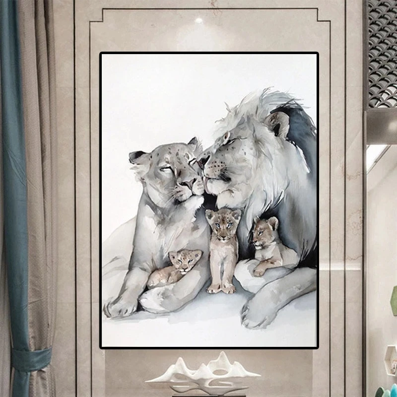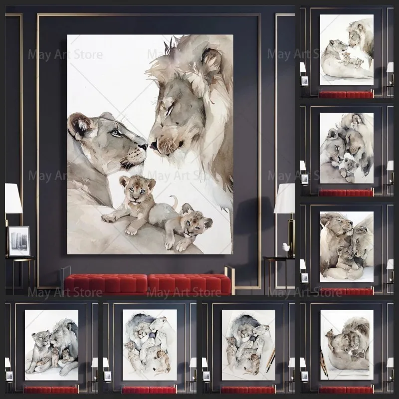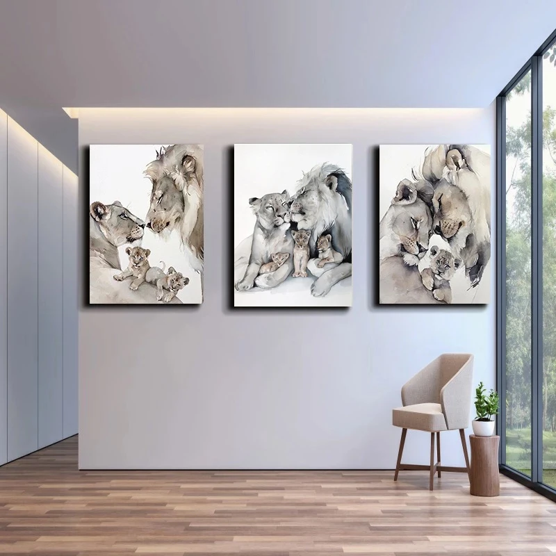 Современные картины на холсте с изображением Льва, семейства животных, плакаты, настенные художественные картины для гостиной, домашнее украшение стен, Куадрос