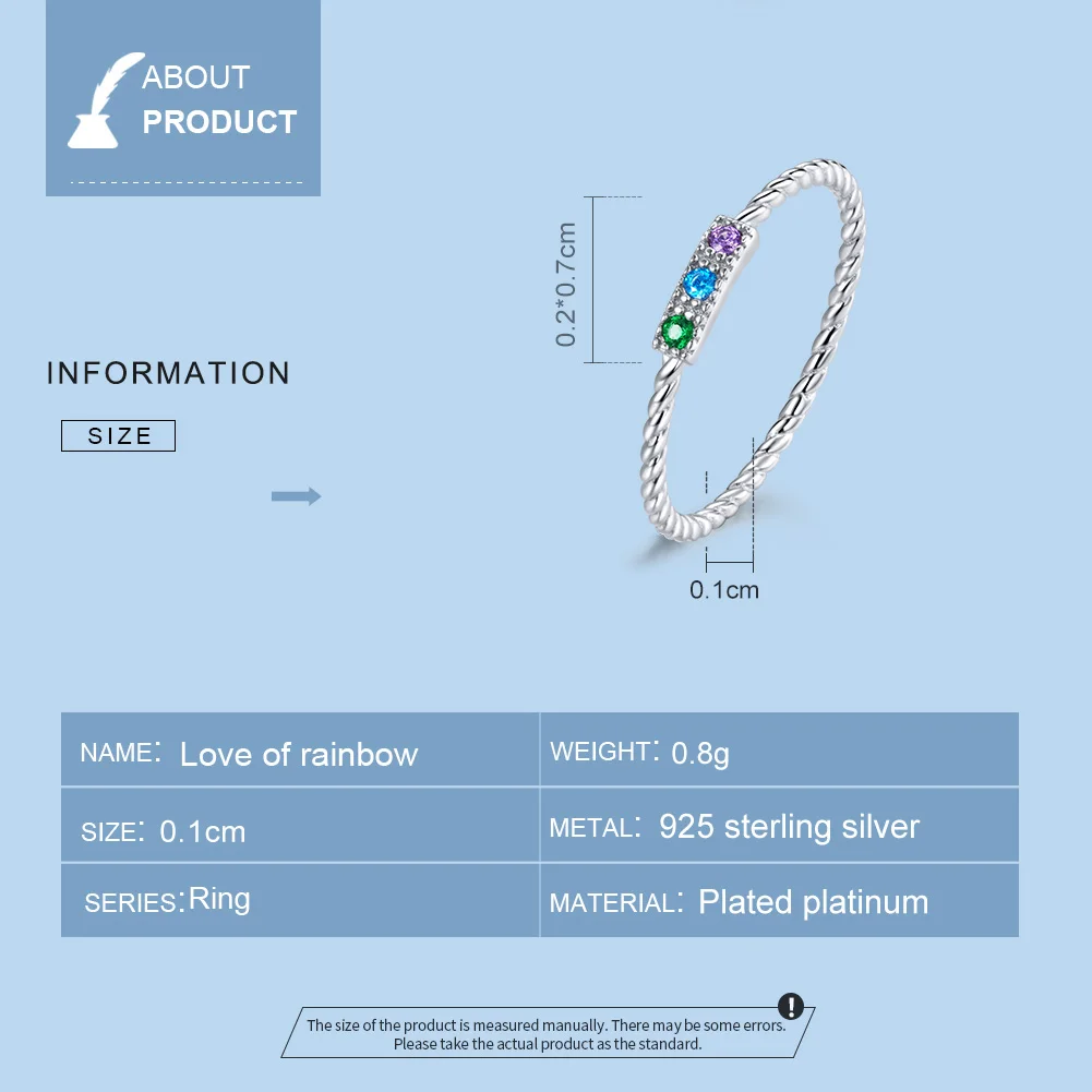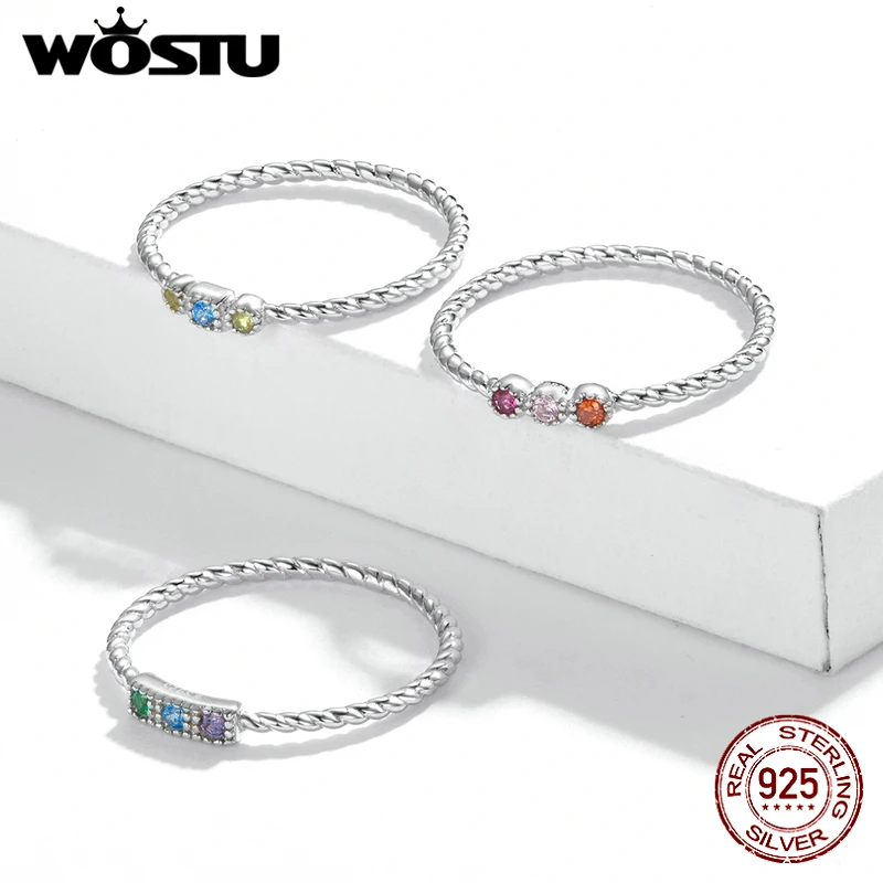 Женское кольцо из серебра 925 пробы с радужной любовью, разноцветное кольцо с сверкающий циркон, свадебное украшение из серебра 925 пробы
