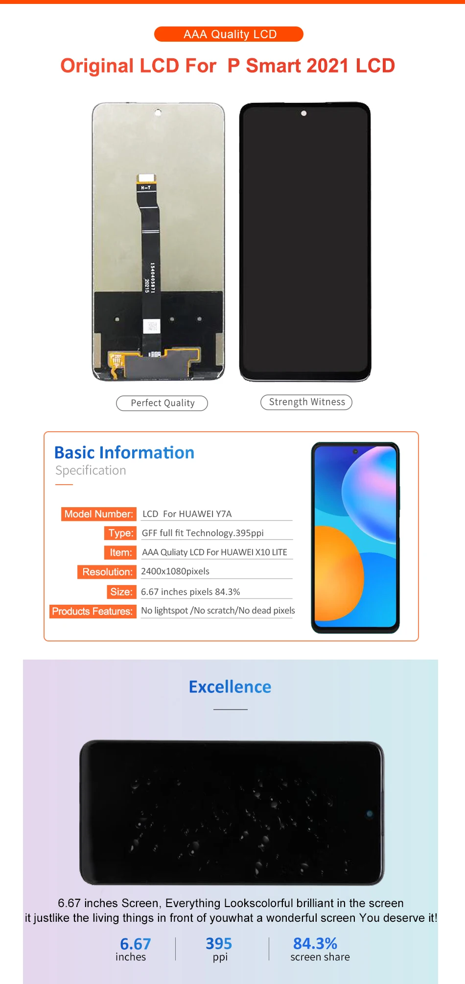 100% Оригинальный дисплей для Huawei Honor 10X lite X10 lite DNN-LX9 Y7A, ЖК-дисплей, сенсорный экран, дигитайзер для Huawei P Smart 2021