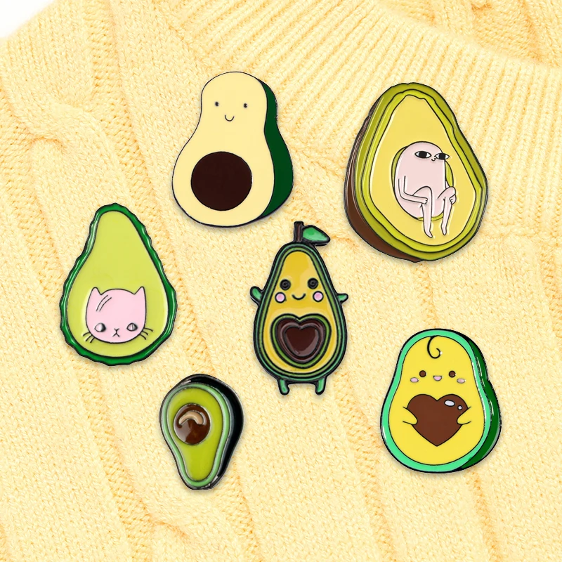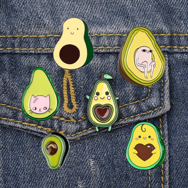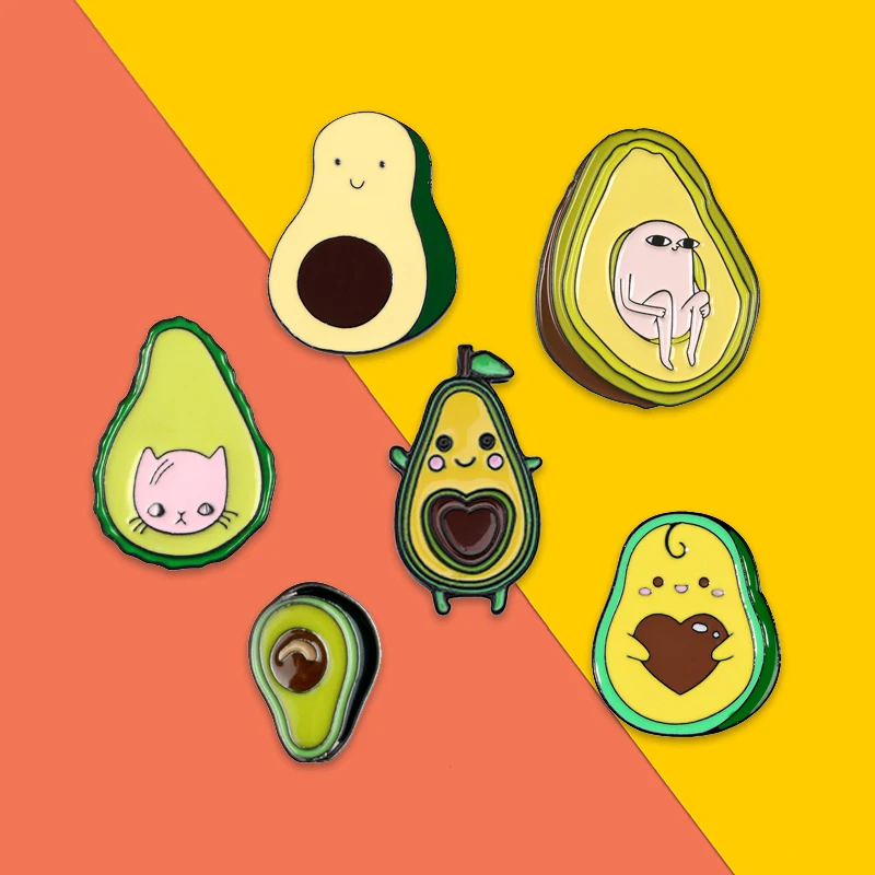 Мультяшные забавные эмалевые булавки с авокадо на заказ, милый приведение, животное, любовь, орех, мешочек для брошек, значок на лацкан, значок, зеленое растение, подарочное Ювелирное Украшение