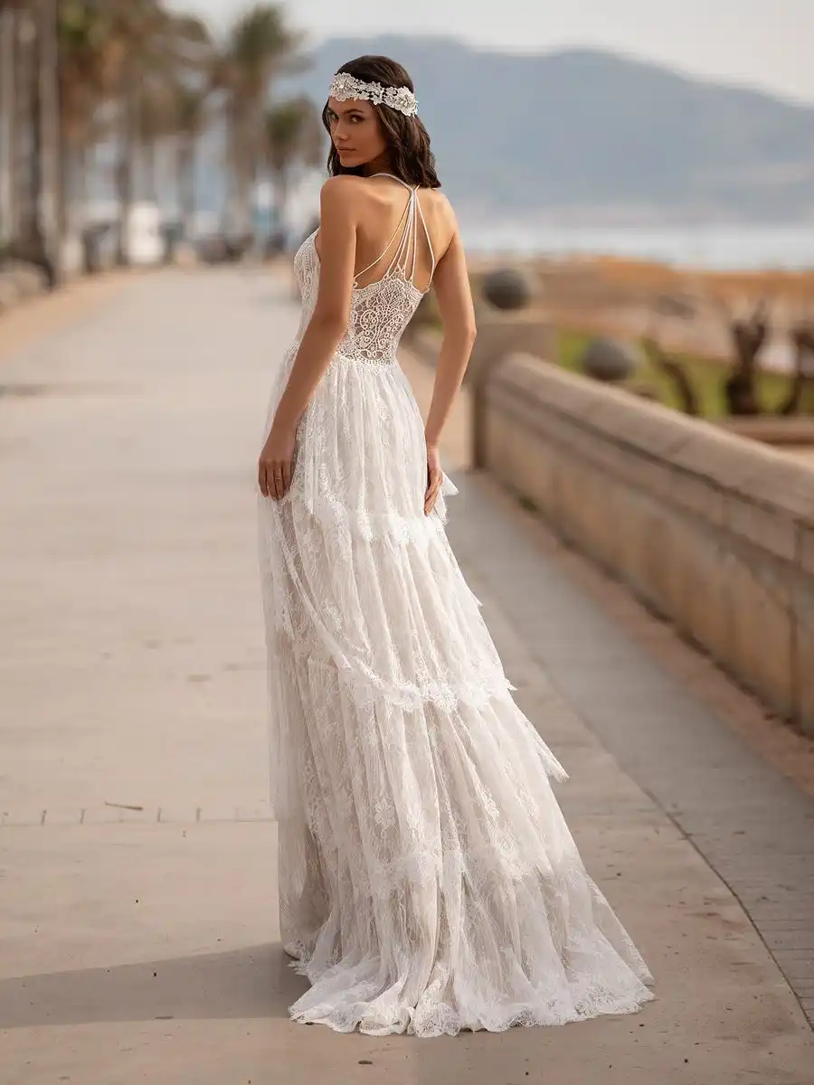 Свадебное платье в стиле бохо, кружевное пляжное платье на бретелях...