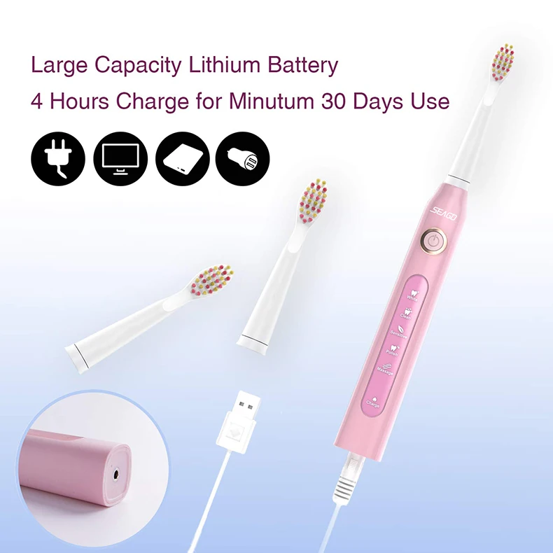 Электрическая звуковая зубная щетка SEAGO с умным таймером и 5 режимами отбеливания зубов
