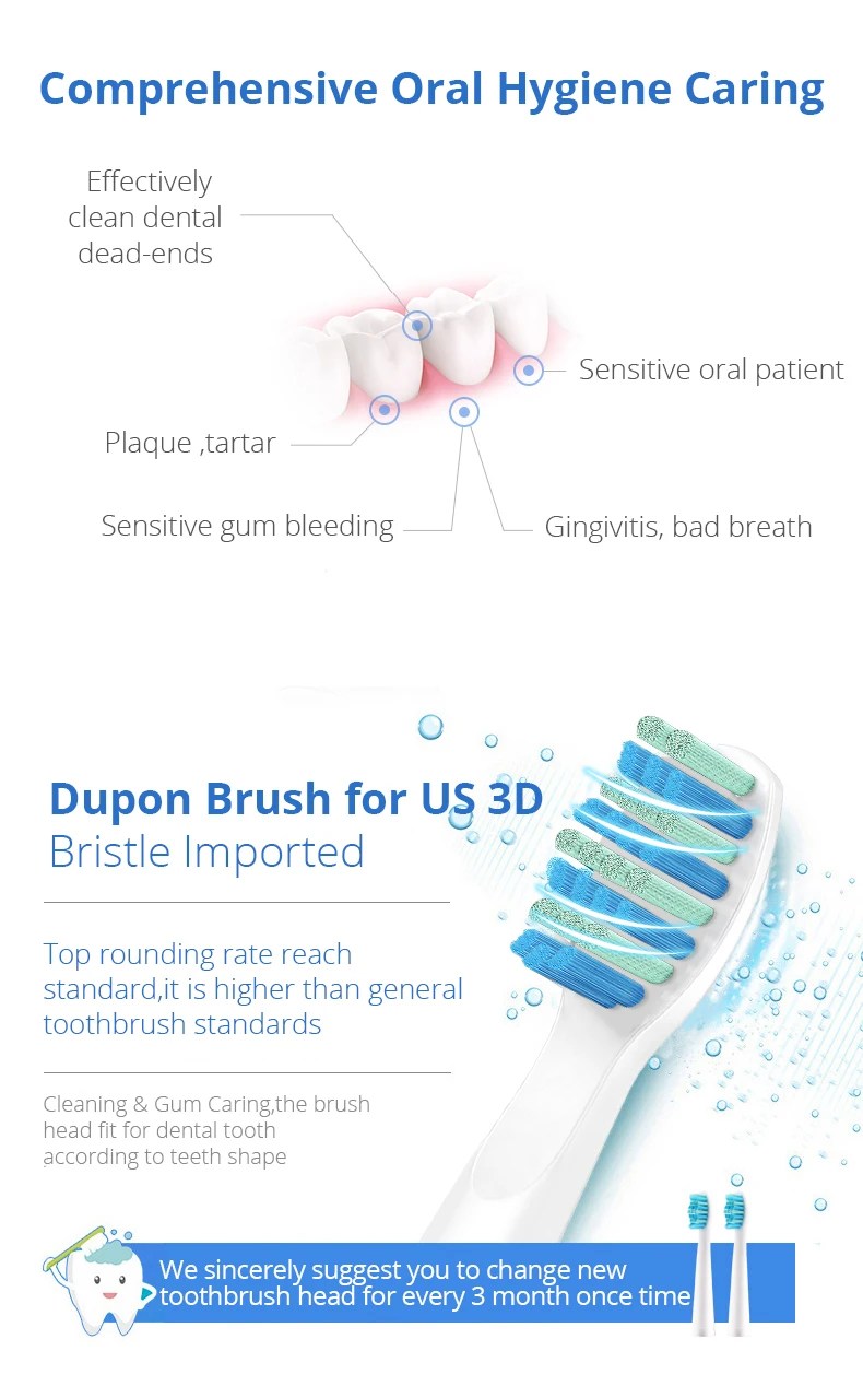 3. Для здоровья рекомендуется менять головку зубной щетки каждые 3 месяца
