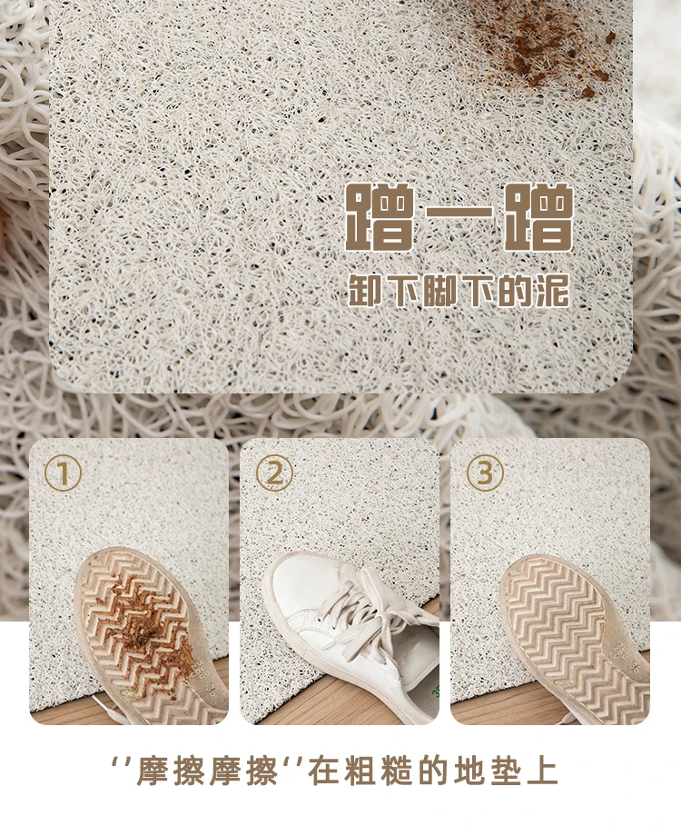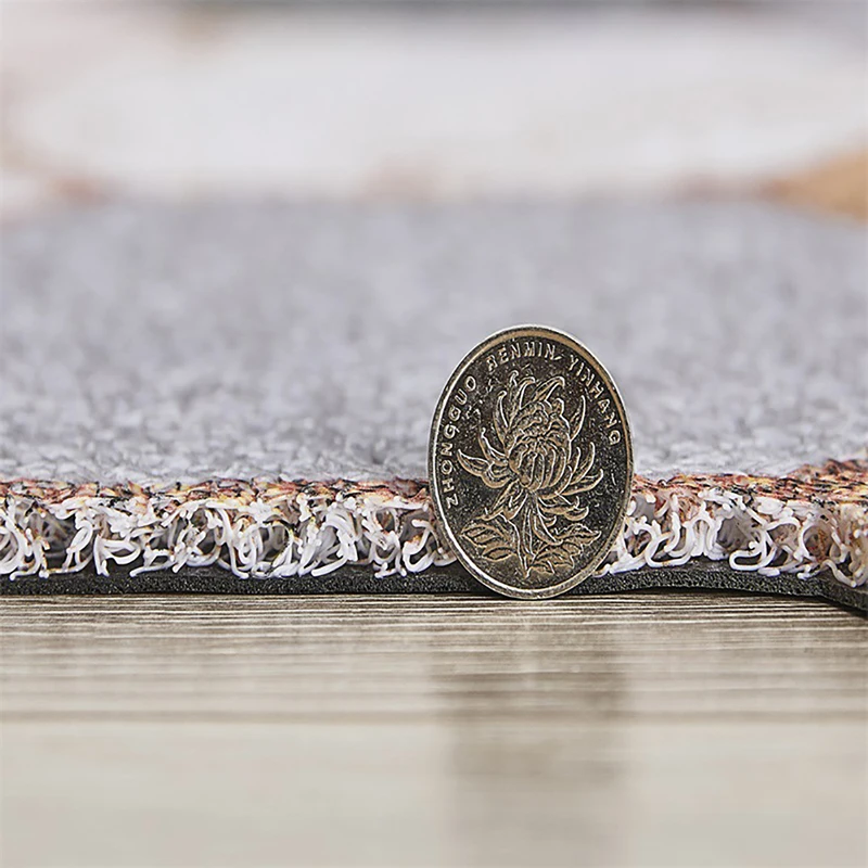 > Этот продукт может быть настроен на в соответствии с размером от входа, пожалуйста, свяжитесь с нами, если вам нужно сделать заказ. > Изготовлен из экологически чистого материала и безвреден для людей. > Нижняя часть выполнена из противоскользящего материала, который предотвращает скольжение коврика и защищает вашу безопасность, верхний материал может впитывать влагу из обуви, делая пол чистым и сухим, также удаляет пыль, грязь, снег и т. д. > Его можно свободно вырезать в любую форму, и он подходит для внутреннего и наружного подъезда, коридора, гостиной, спальни, ванной и т. д. > Толщина составляет около 8 мм, он может полностью лежать на полу и не мешать открытию и закрытию двери. > Когда он заполнен частицами грязи, вы можете просто очистить его с помощью пылесоса или использовать садовый шланг для краску, а затем дать ему полностью высохнуть на воздухе перед следующим использованием.