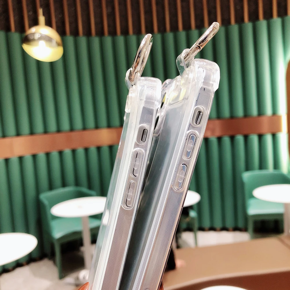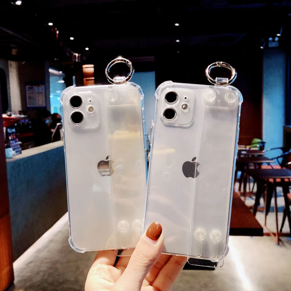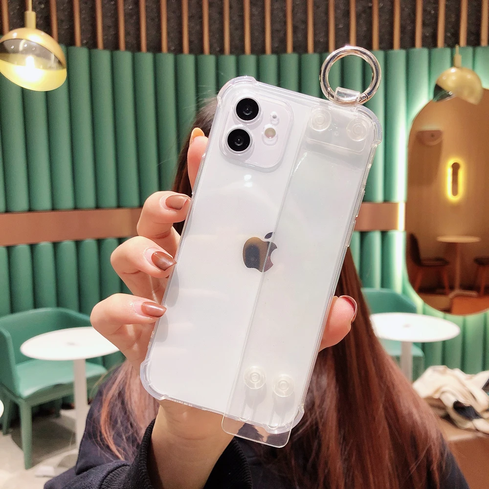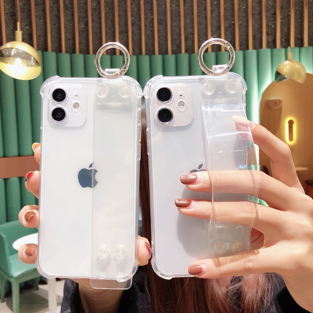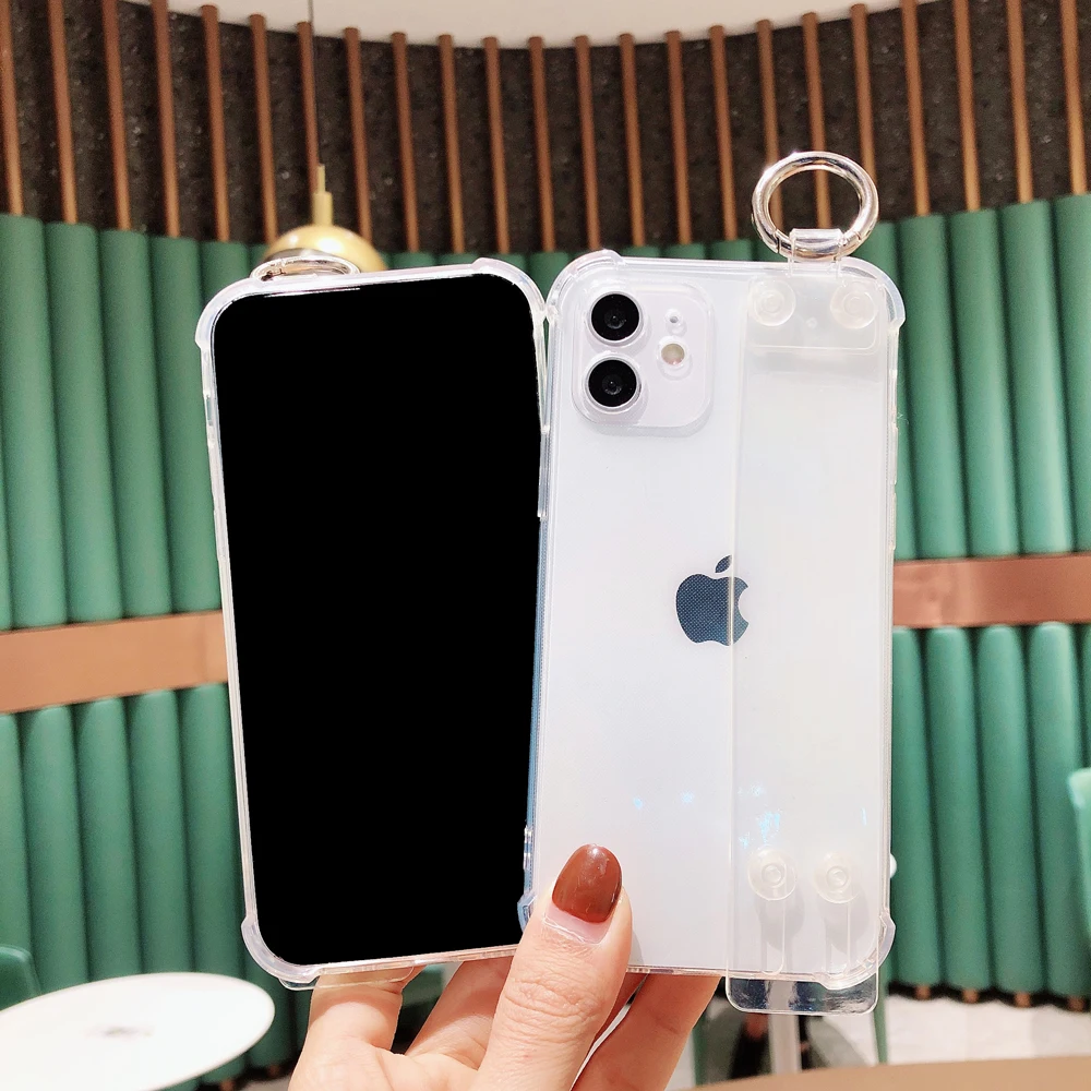 Чехол для iPhone 12 Pro 11 Pro Max X XR XS Max 8 7 Plus 12 Mini SE 2020, мягкий чехол из ТПУ с ремешком на запястье и подставкой, прозрачная задняя крышка