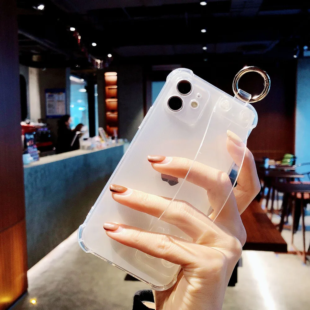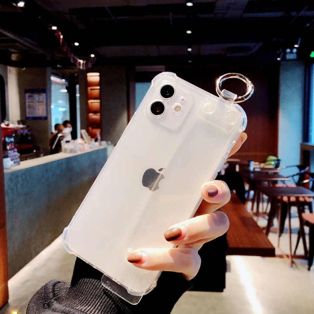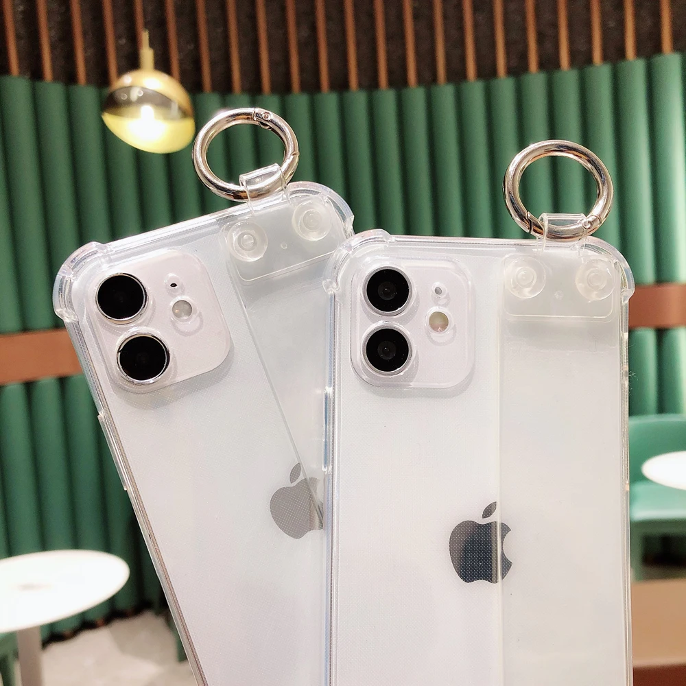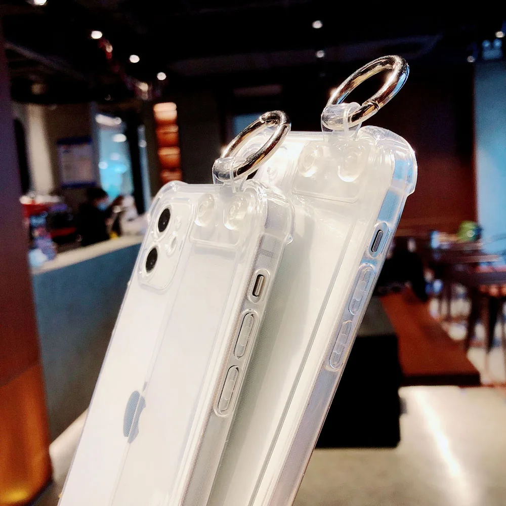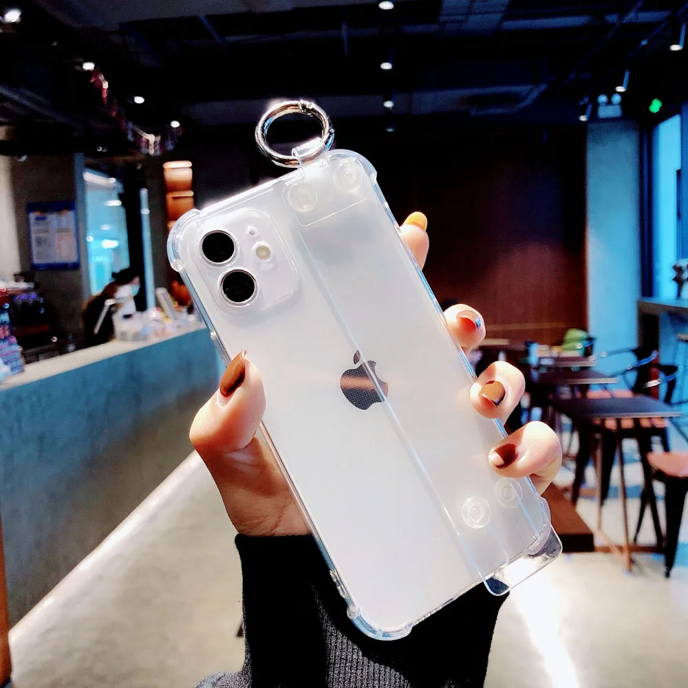 Чехол для iPhone 12 Pro 11 Pro Max X XR XS Max 8 7 Plus 12 Mini SE 2020, мягкий чехол из ТПУ с ремешком на запястье и подставкой, прозрачная задняя крышка