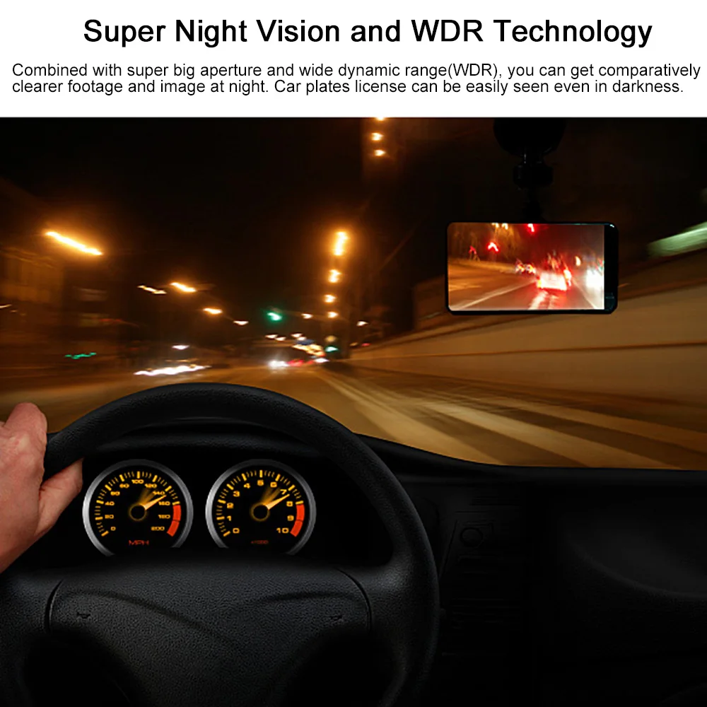 Супер ночное видение и технология WDR: в сочетании с супер большой апертурой и широким динамическим диапазоном (WDR), вы можете получить сравнительно более четкие кадры и изображения в ночное время. Номерные знаки автомобилей легко видны даже в темноте. Безопасность вождения в ночное время будет значительно улучшена.