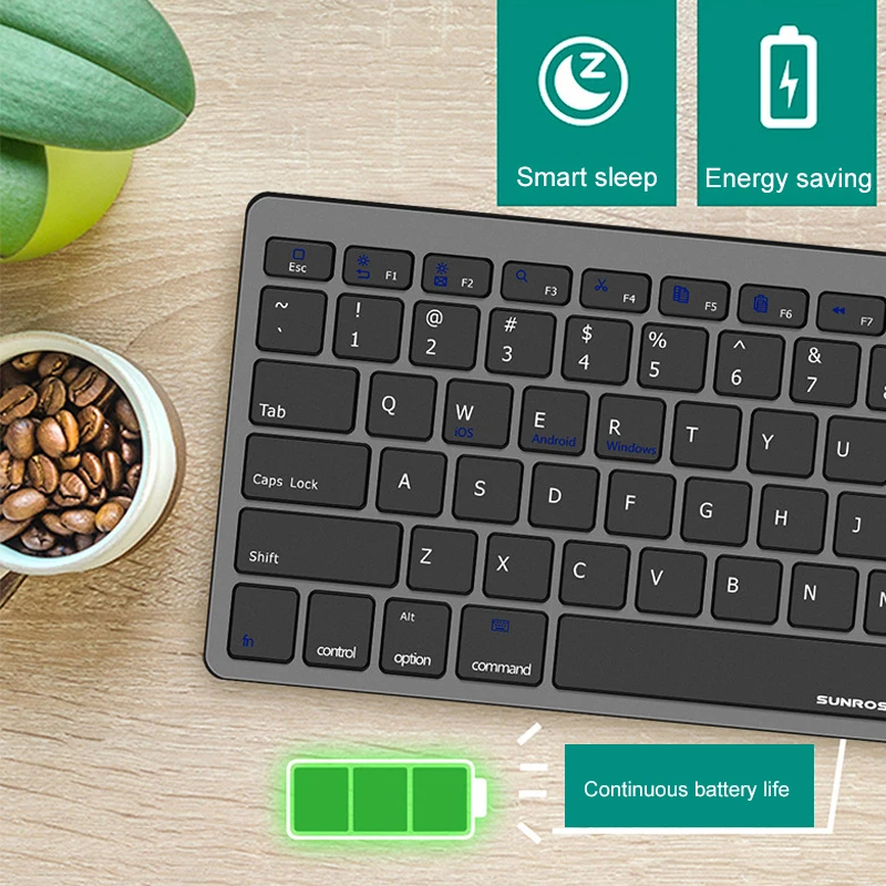 Bluetooth клавиатура беспроводная Тонкая клавиатура для Windows iOS Android ноутбука настольного ПК планшета черный и серый