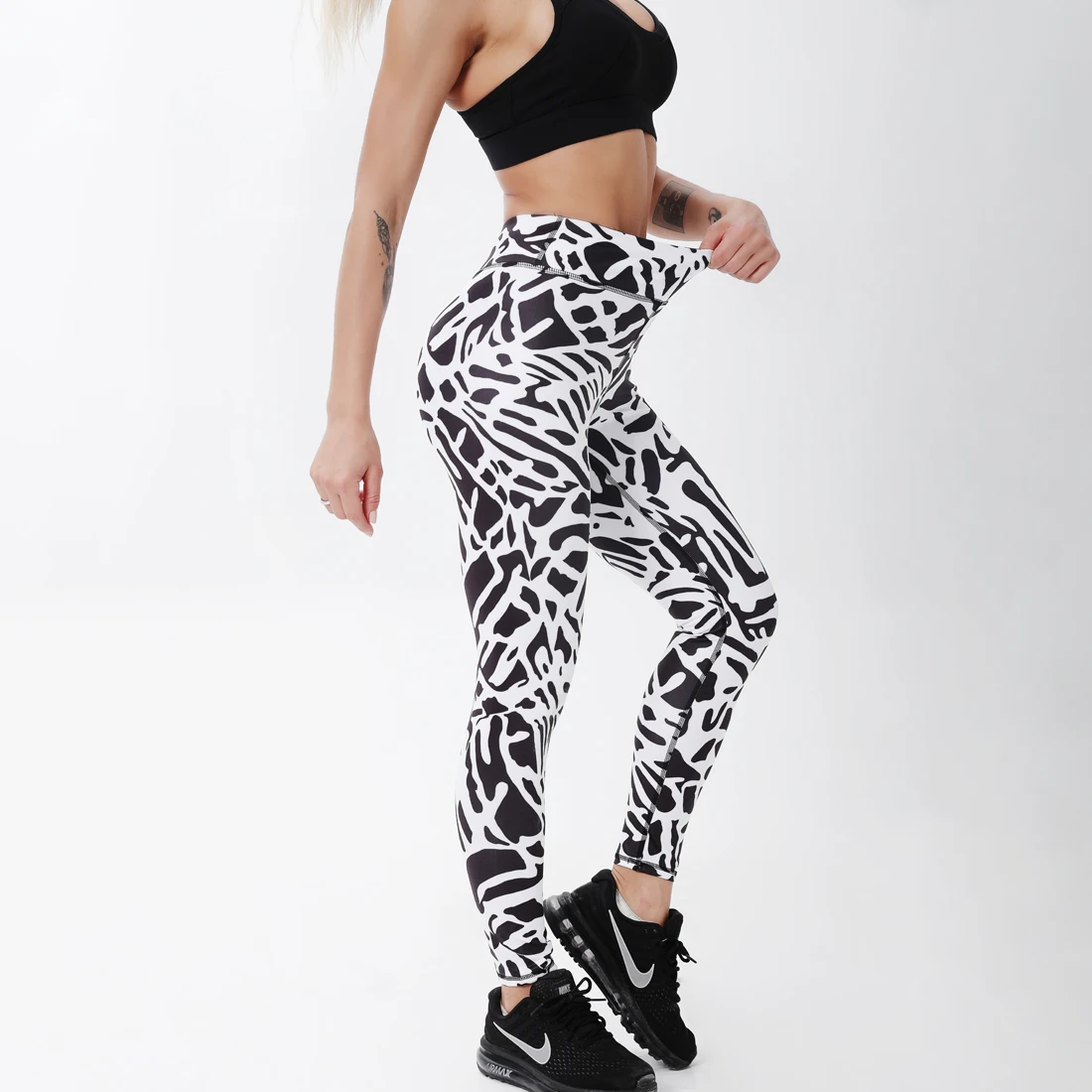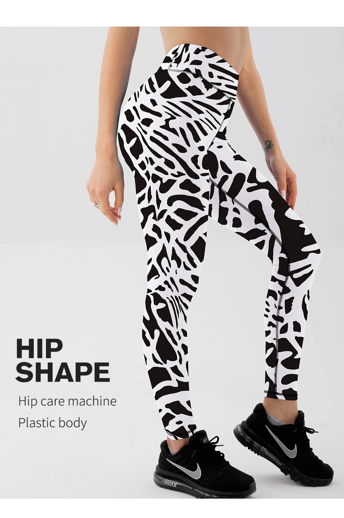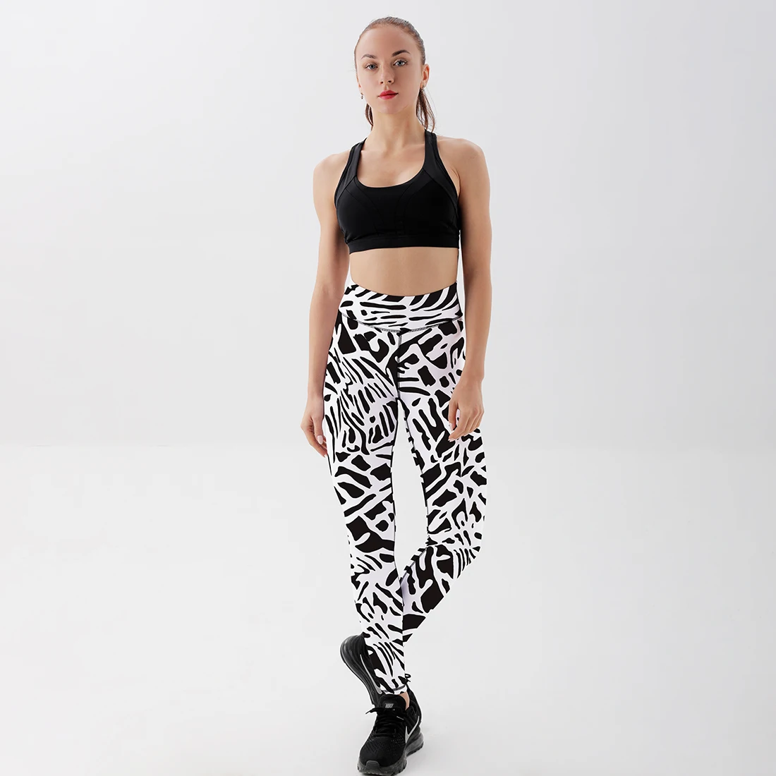 Леггинсы женские для фитнеса, модные эластичные штаны из полиэстера до щиколотки, с принтом зебры, с завышенной талией, с эффектом пуш-ап