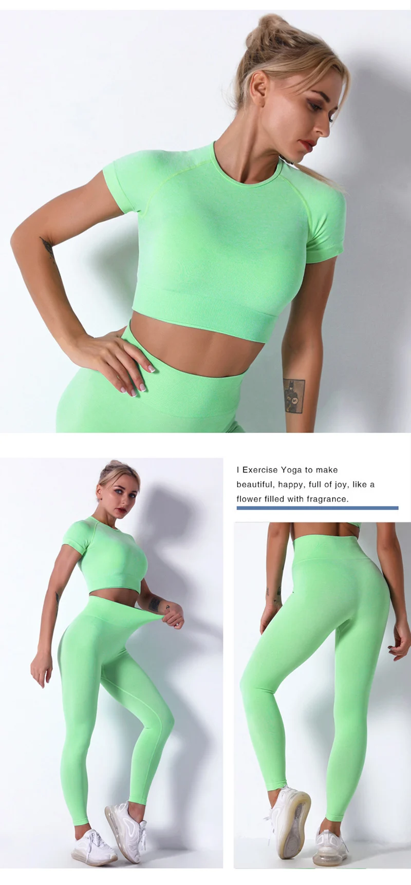 Комплект для йоги WOHUADI, женская спортивная одежда для фитнеса, бесшовные леггинсы с высокой талией, шорты, рубашка, короткий топ, спортивный бюстгальтер